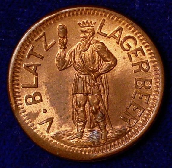 Here is another piece of art from Milwaukee Civil War token artist, John Marr. The obverse of this Blatz Beer token features Gambrinus, the king beer.