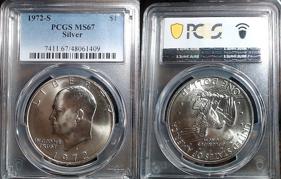 1972S SILVER US IKE DOLLAR PCGS MS67 (SPOTS: ($24.00)