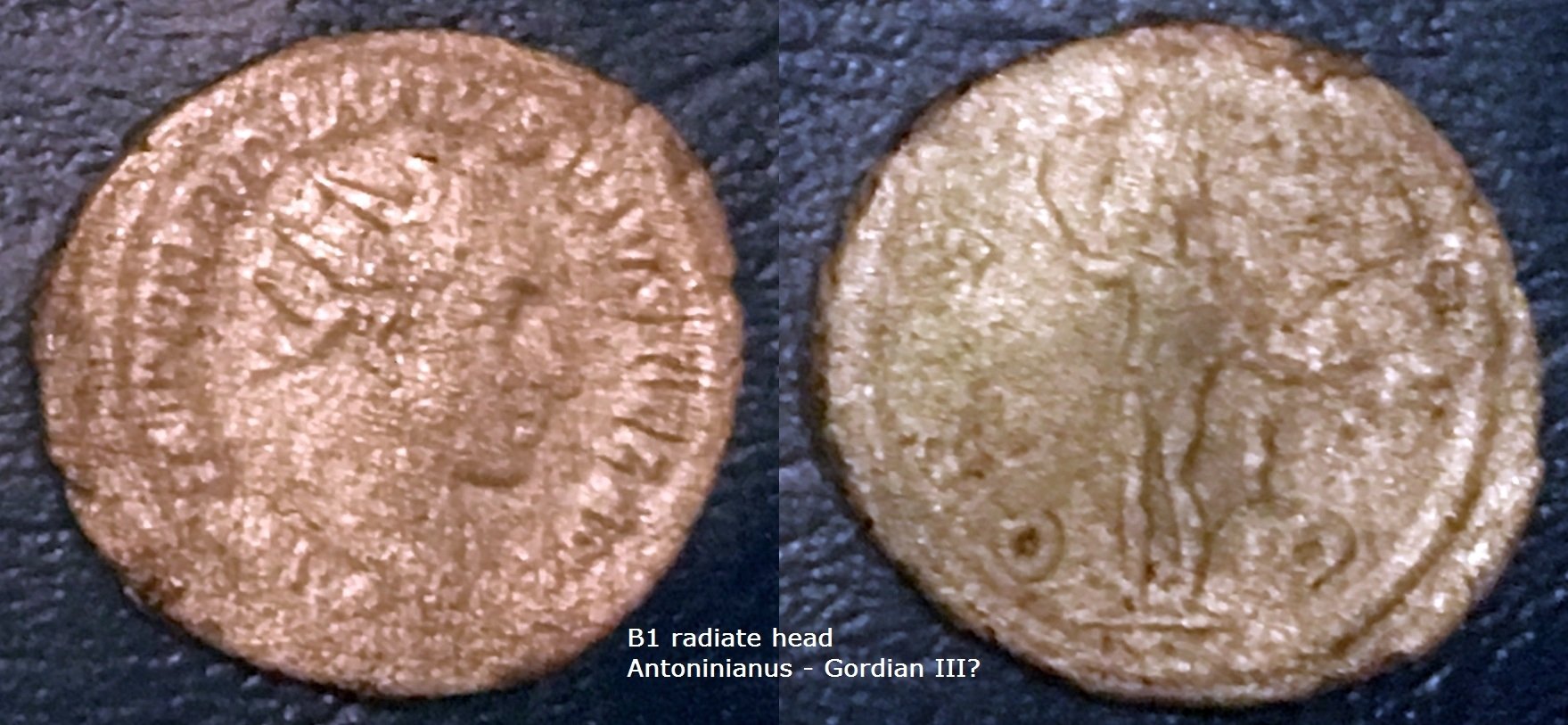 B1 - looks like IMP GORDIANVS PIVS ... on obverse.