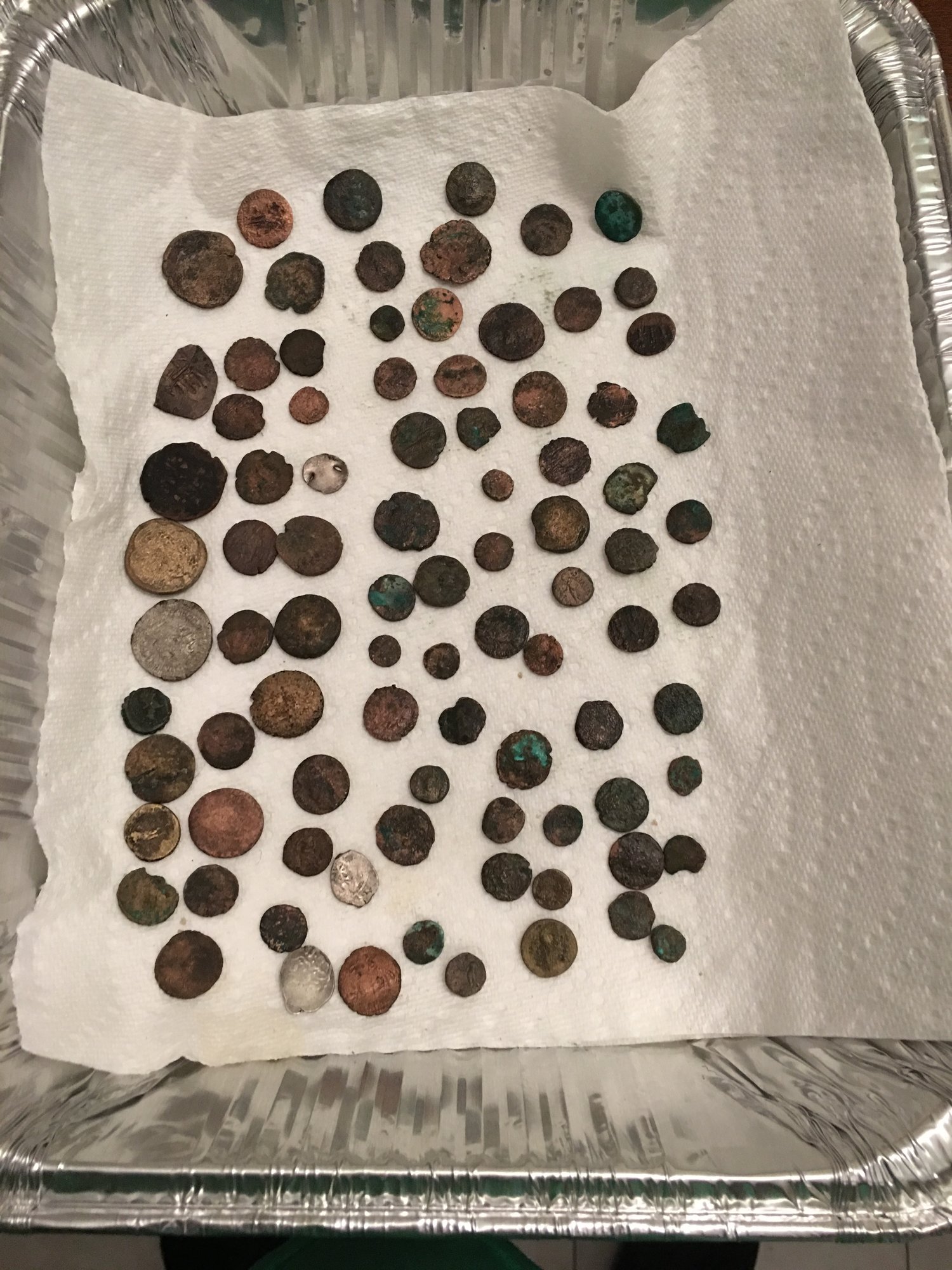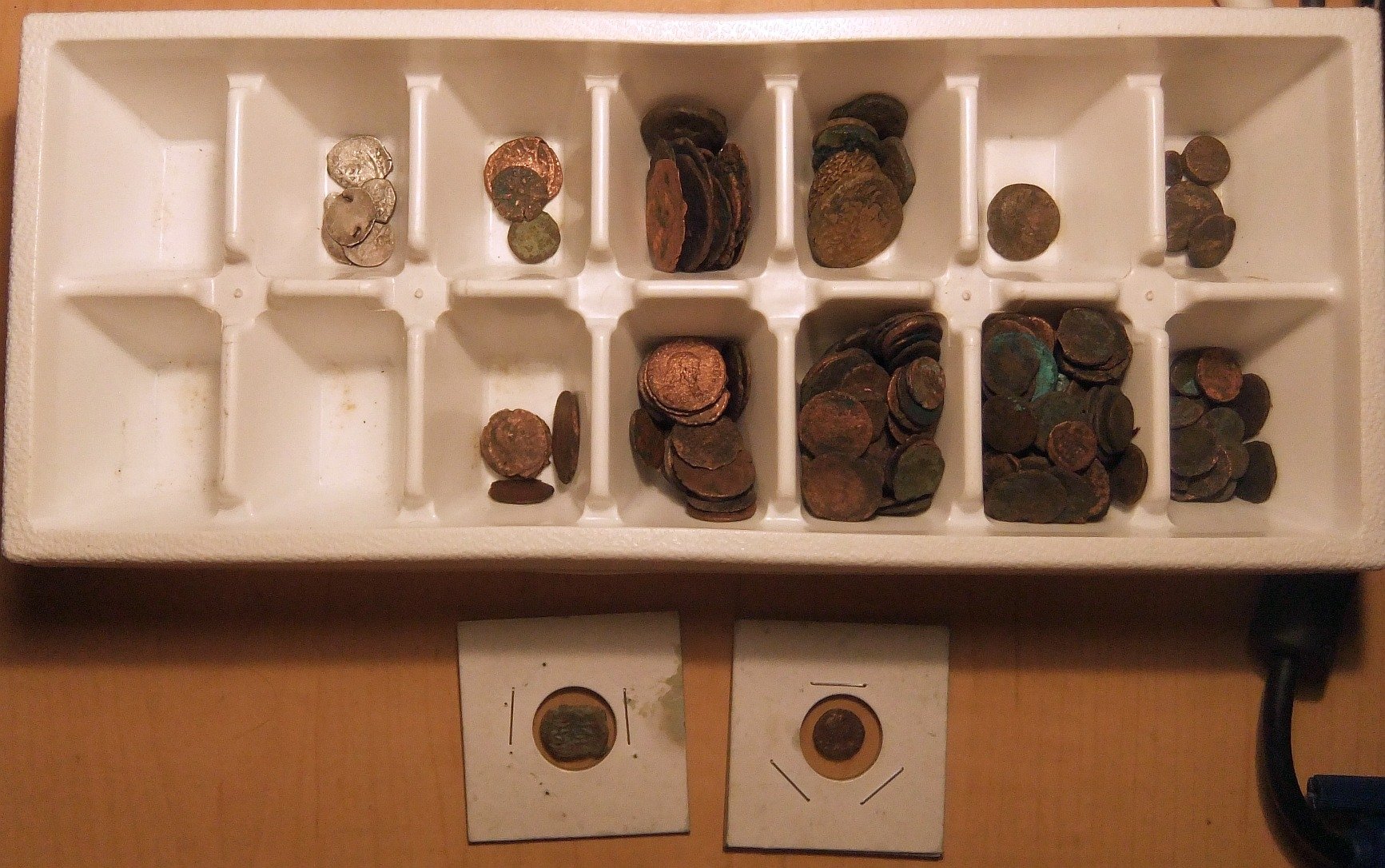 I recently bought a collection of coins because the estate had many partially completed DANSCOS and was very happy with those coins, but after finally taking the time to go through everything; I came across around 100 coins(?) that I couldn't identify. I brought them to a B & M and they told me that most of them were ancient copper coins in various levels of cleaning.