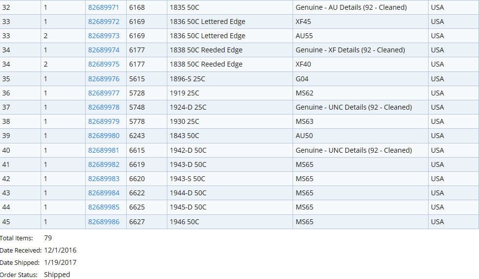 Not to mention coins were received on December 1, 2016 and just now shipped.....long time to wait for these results.