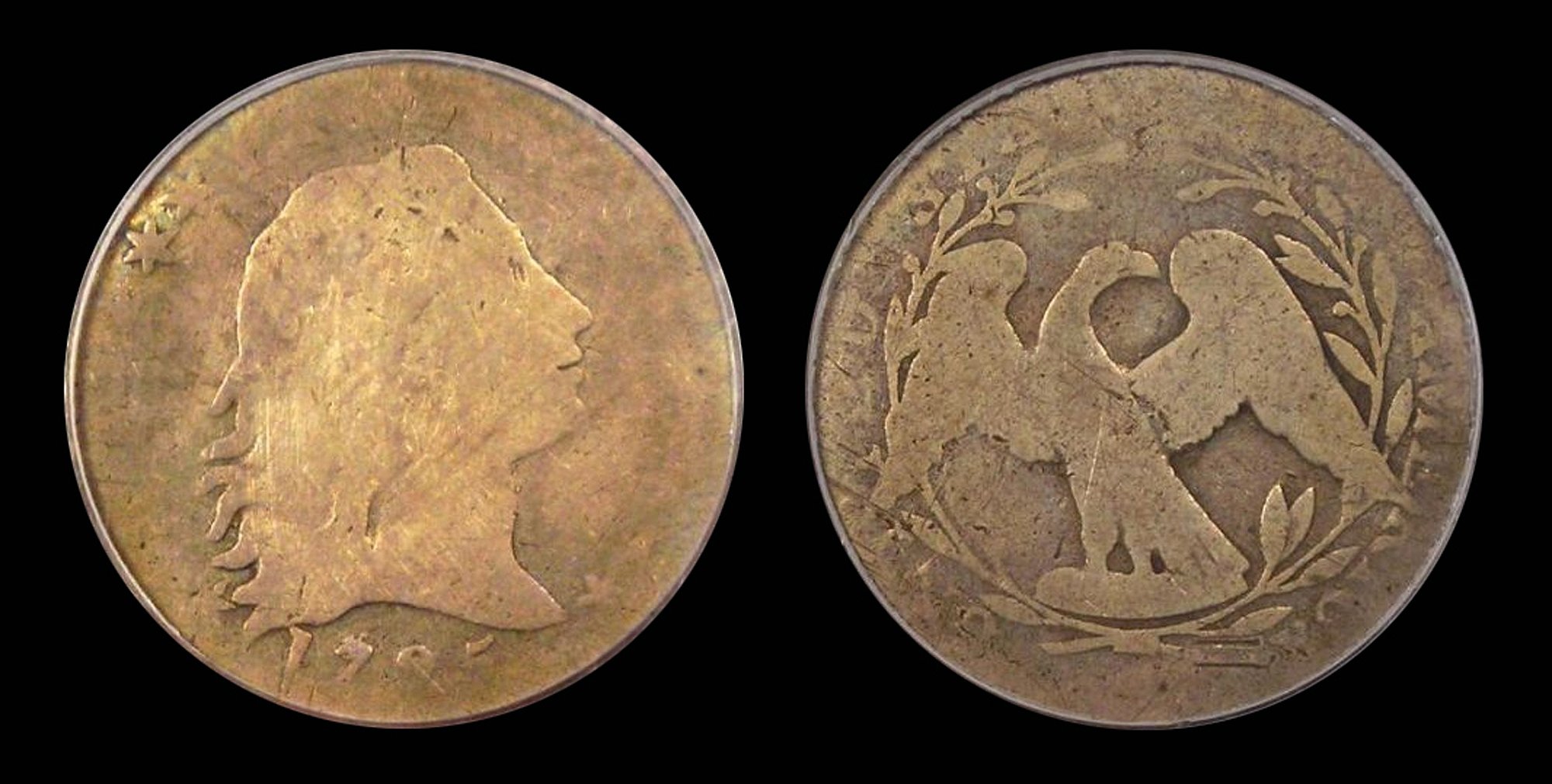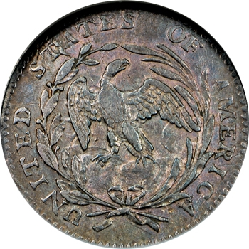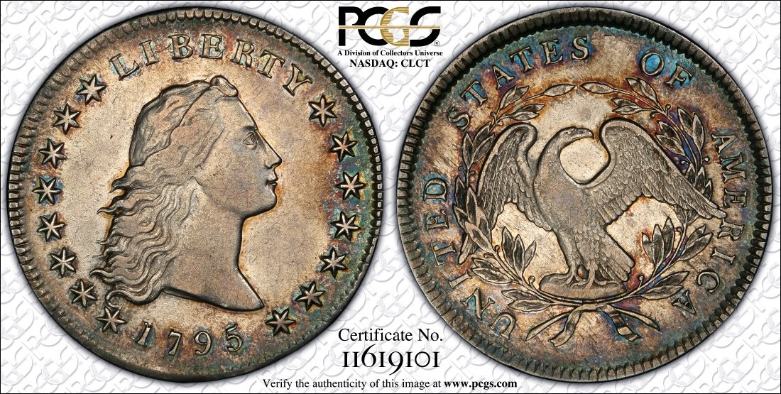 What caused this? A pair of hardened dies, used already to strike earlier die states of 1795 B-6, BB-25, was reworked. The right foot of the L in Liberty was lengthened, a fourth leaf was added under the first S in STATES, and the stems and leaves on the lower right were "strengthened" with a graver, resulting in some detail being seen "on top" of the eagle's right wing. The obverse and reverse die were "remarried" and more coins were struck using the reworked (or repaired) dies.