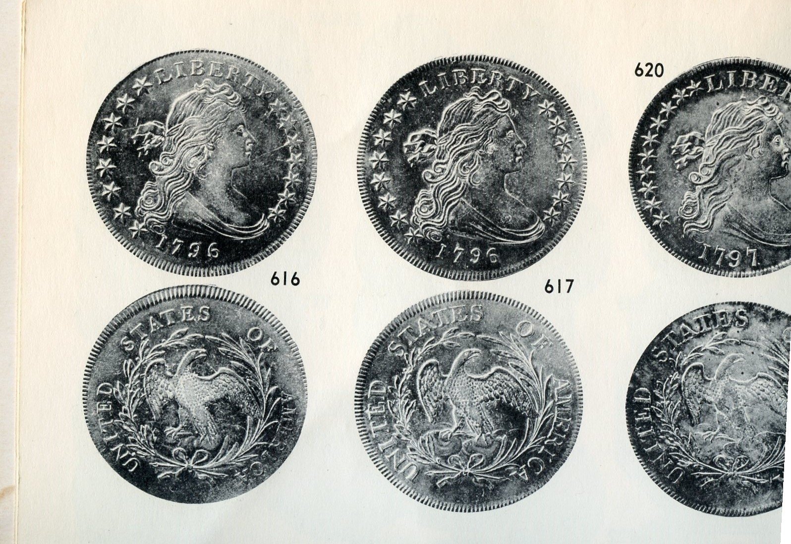 Here's a black and white plate scan of a pair of 1796 Dollars. Both of these 1796 Dollars are ex. Newcomer-Green and were sold in the November 24, 1956 New Netherlands Forty-Eighth Catalog of Rare Coins sale.