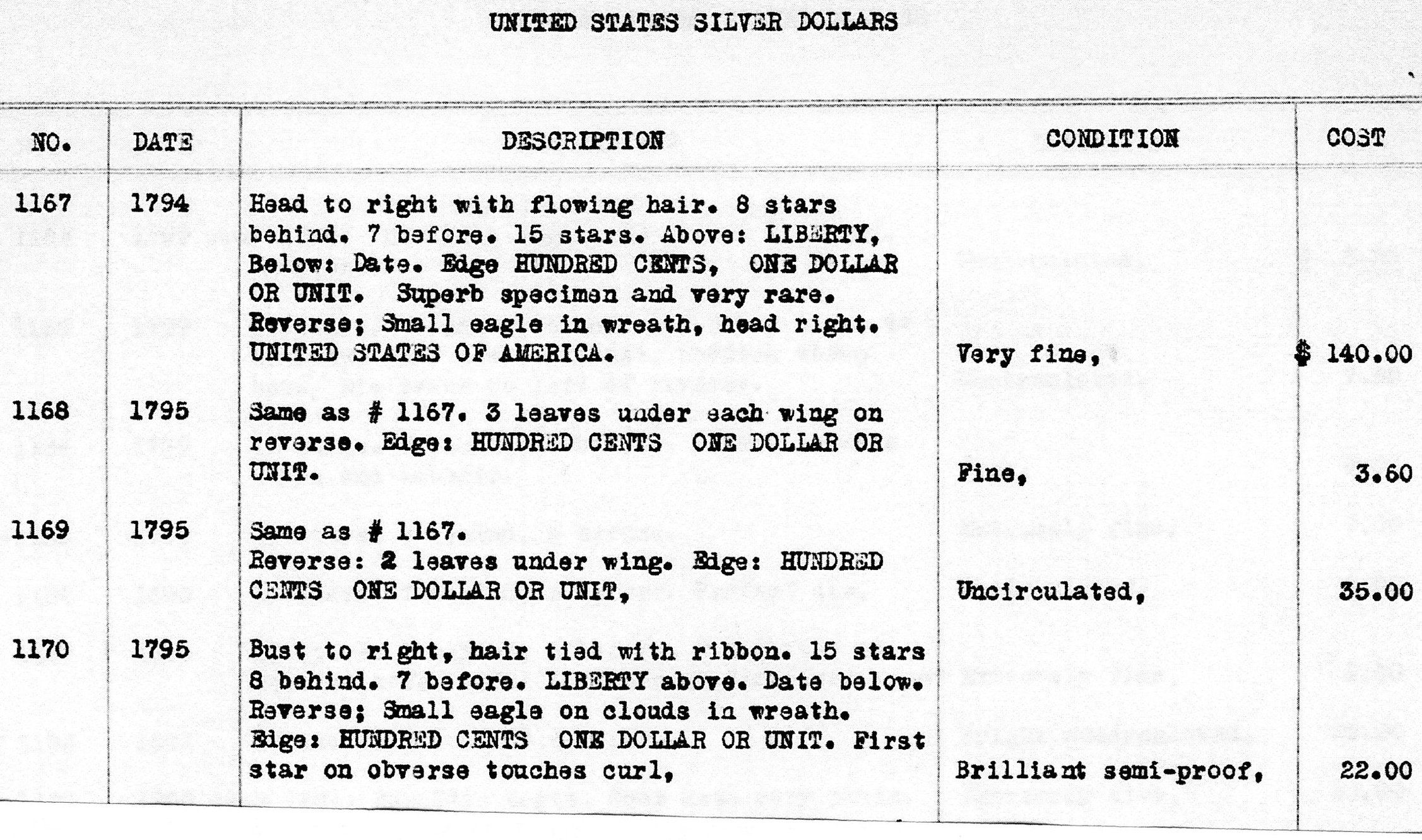 I do have a two page copy of the Newcomer Inventory for the early dollars 1794-1804. Unfortunately there are no photos or pedigree information with this inventory.