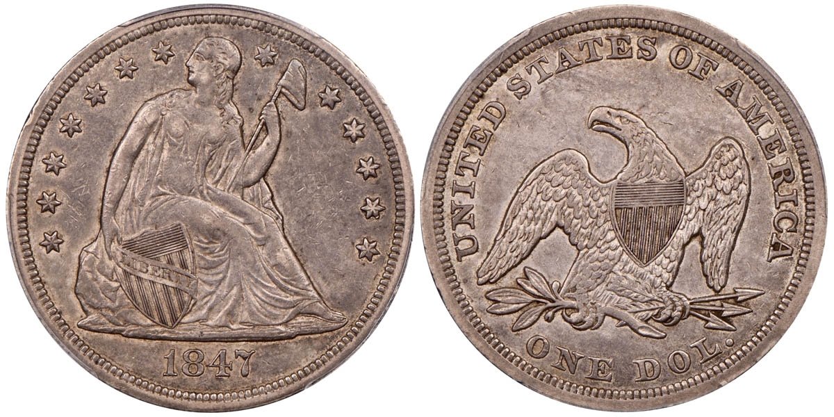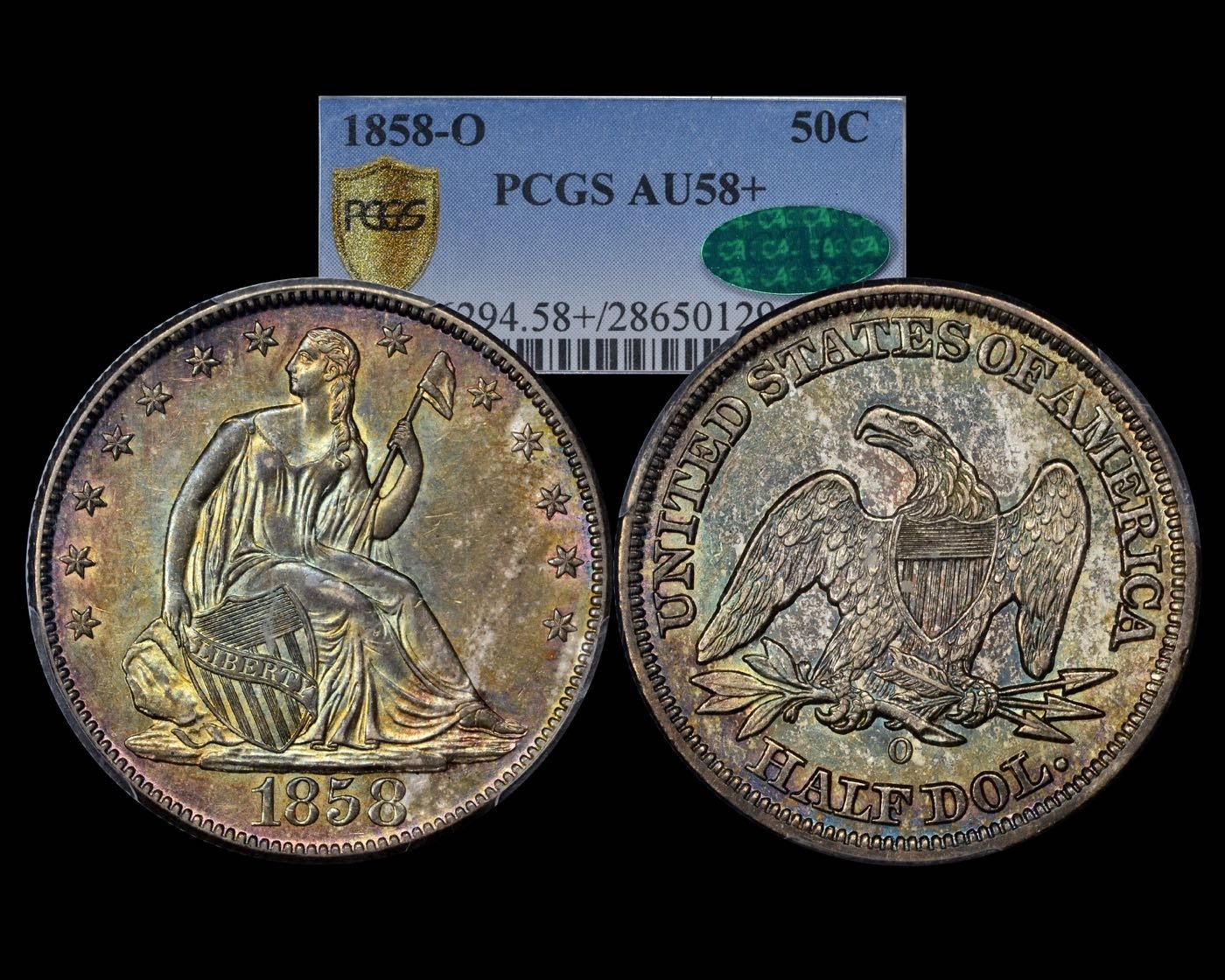 170 year-old Seated Dollar in PCGS AU50 CAC.