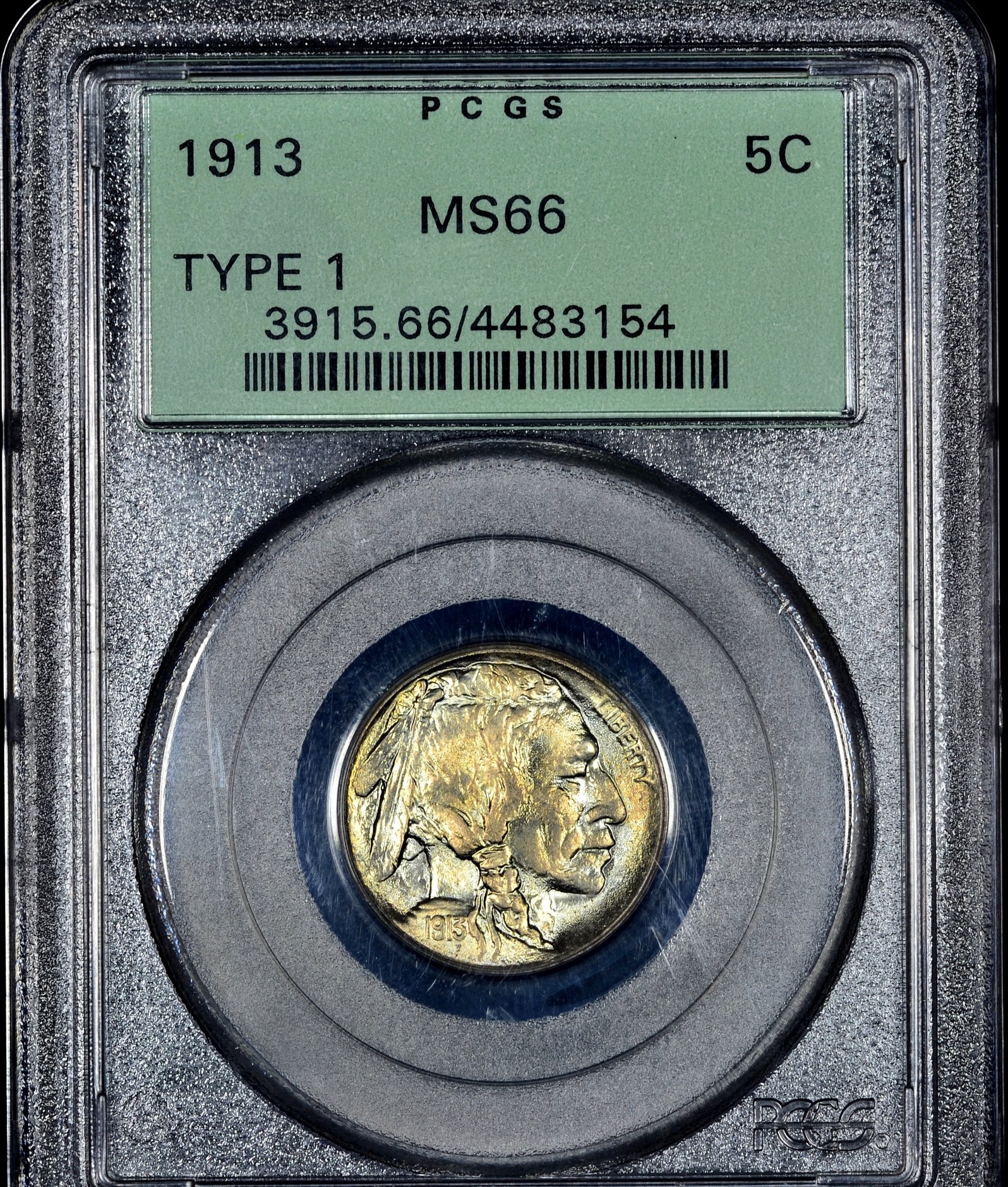 I was lucky enough to stumble across this beautiful 13 type 1 in an old green pcgs holder. Yep, yet another type 1 for my collection. The strike is above average and the color and luster are also quite nice and pleasing to my eye.