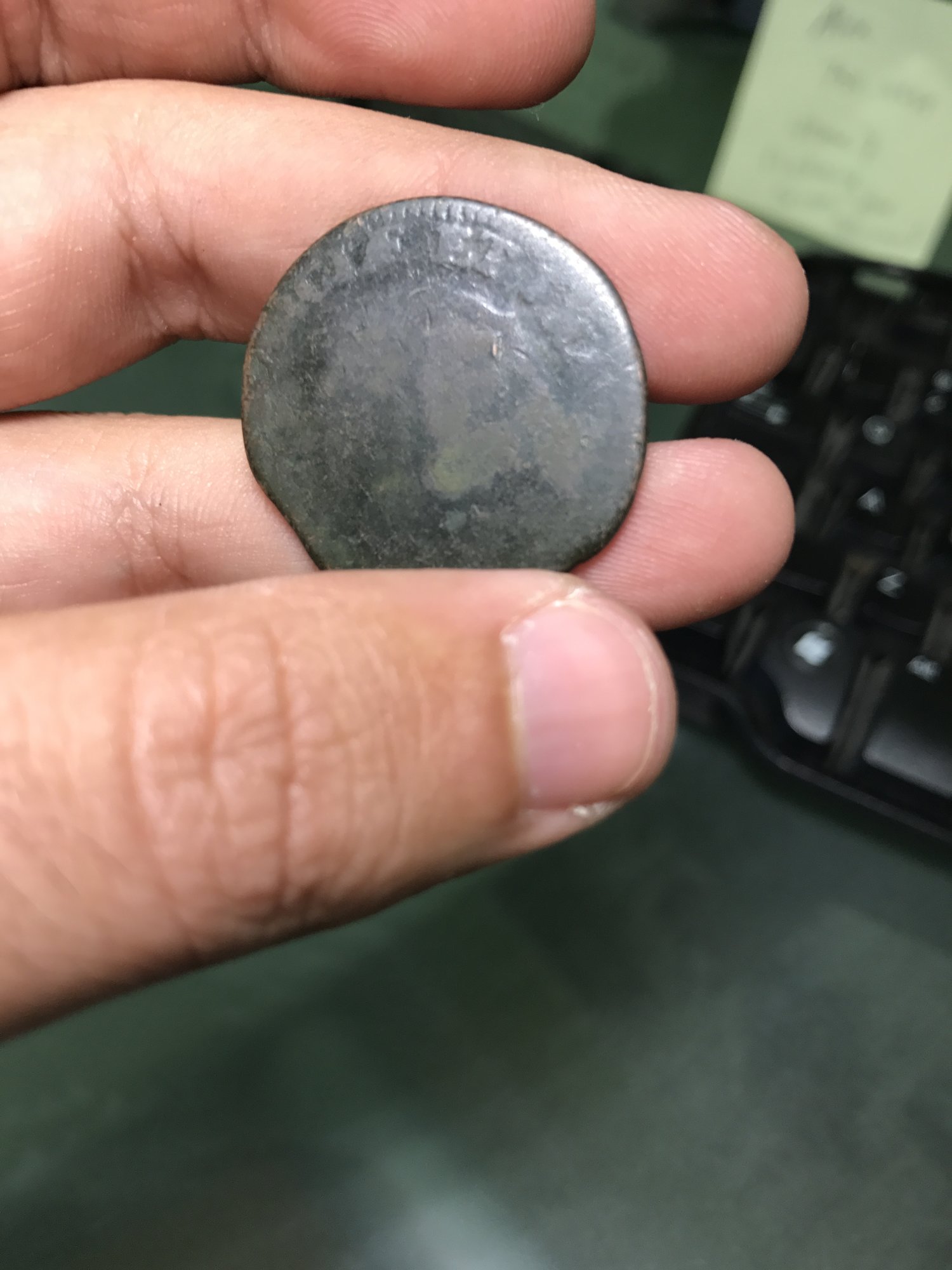 I found these inside an estate sale piece of furniture I bought, very old, can someone help me with the value? total of 4 coins and I put a lot of Pictures, the ones with holes in them are from some kinda weird material, not metal or copper, like Ivory.