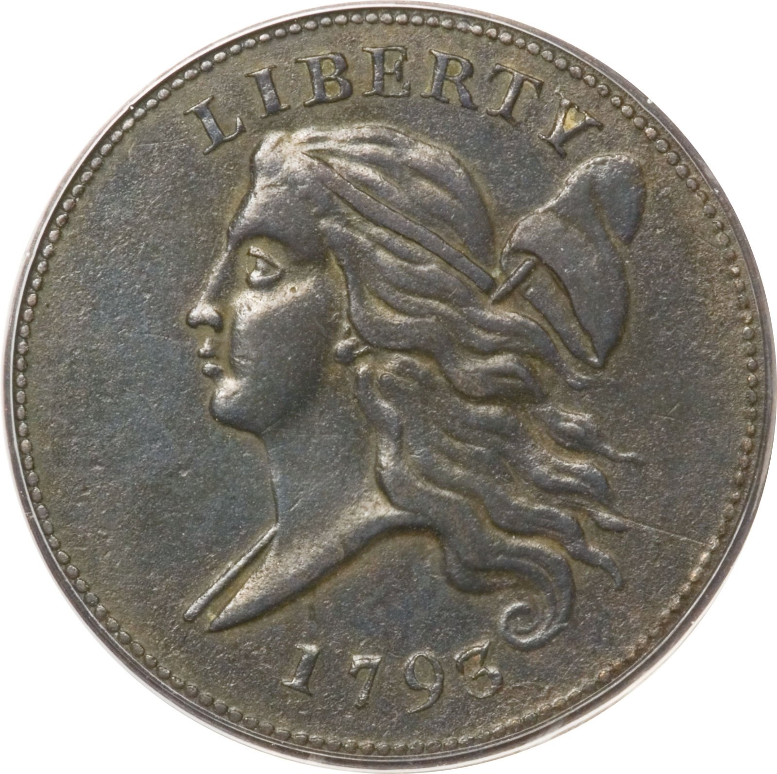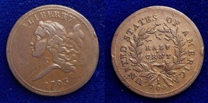 1793 Half Cent - The face of Ms. Liberty is the same as one that appears on the 1792 disme pattern coin.