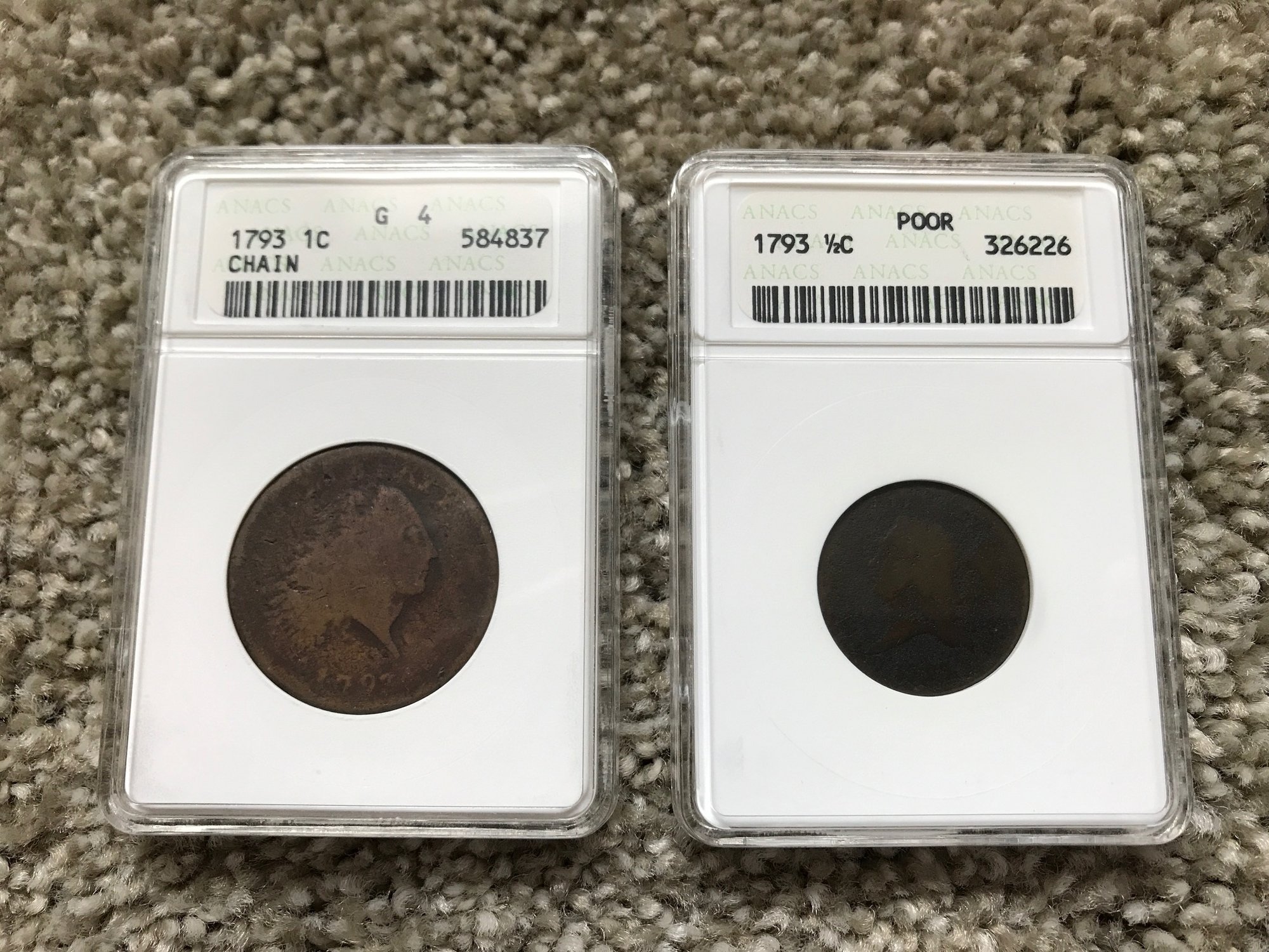 The 1793 half cent came from an old New England coin buddy, Bob Elder. The 1793 Chain came from the Worthy Coin Bid Wall which was once a fixture in Boston. And I bought the 1793 Wreath from Catherine Bullowa.