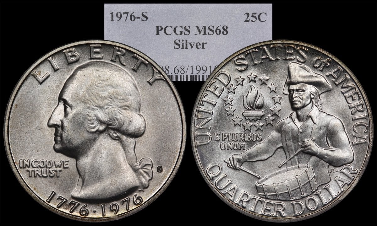 1776 Continental Dollar! Current, the Bicentennial Quarter. Please O Please after all the special interests have been placated....return that wonderful Drummer to the reverso of the Quarter as a standard. Impossible to improve on that Amazing design!!
