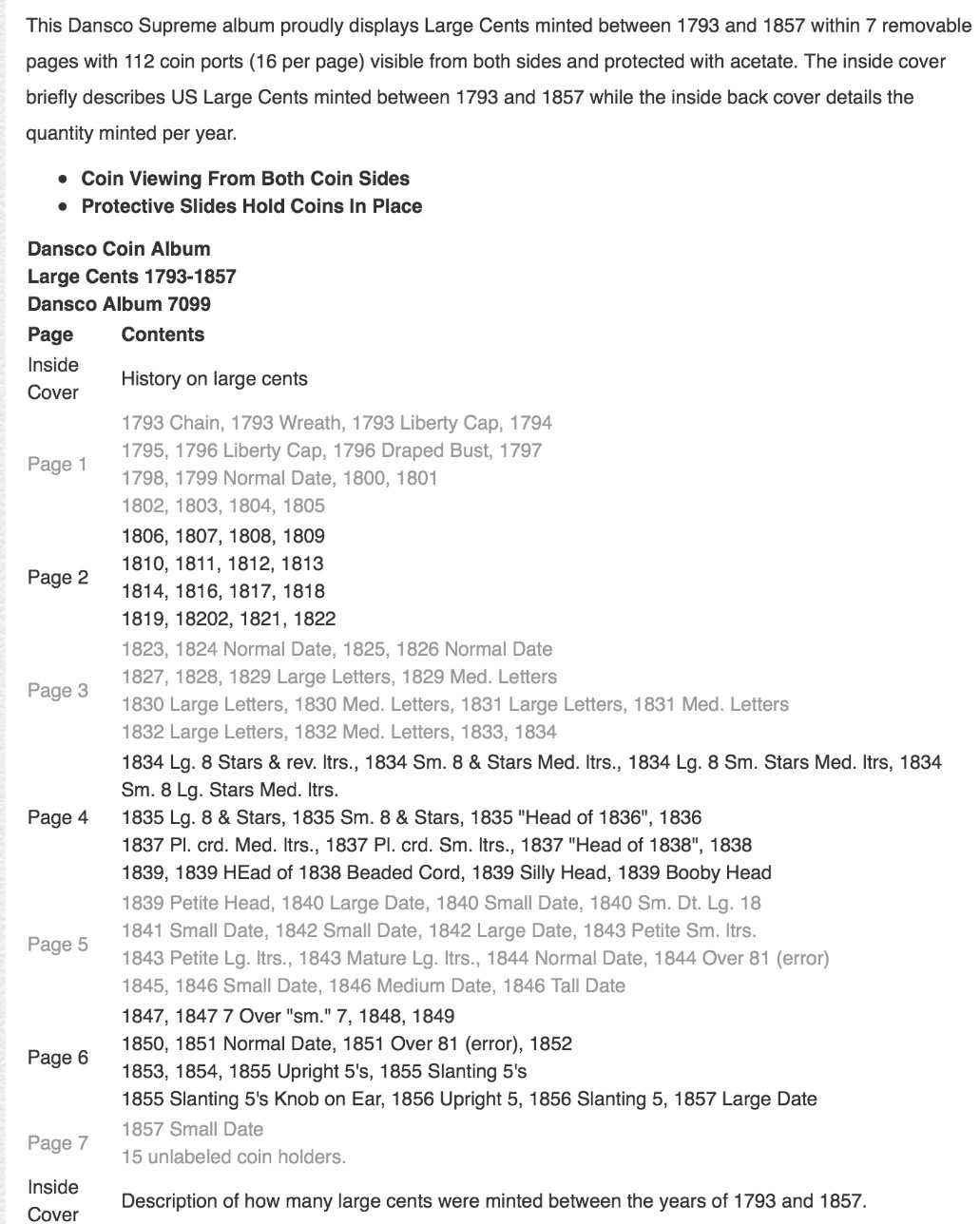 Decent question. I've been picking up solid raw VF-XF Large Cents when the come around with the entention of maybe making a Dansco book someday. I think it would be solid joy to flip the pages full of old coppers. I'm even getting tired of the growing stack of 2x2s spreading out.