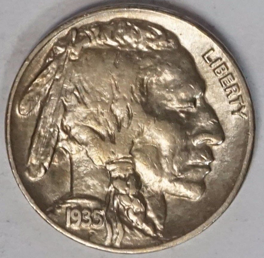What might have caused this perimeter damage to this 1935 Buffalo Nickel? It appears to me to be previous to the strike, but would like your opinons. It appears under LIBERTY and again just below the feather.