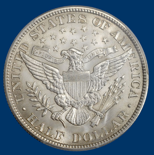 The luster must be phenomenal: "Pure white Gem! The 1915 Philadelphia is the second lowest mintage in the entire Barber half dollar series (after the 1914). Consequently, it is rare and desirable even in the lowest grades. This Gem has clean surfaces and is 100% fully struck. The luster is bright and white." http://www.collectorscorner.com/Products/Item.aspx?id=32744749 Coinfacts has a lot of examples, mainly toned: http://www.pcgscoinfacts.com/Coin/Detail/6471