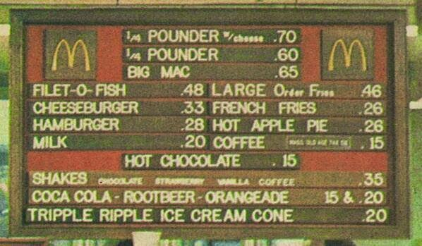 That was the Summer of ‘63 when those prices were in effect. There was no quarter pounder or Big Mac or large fries yet.