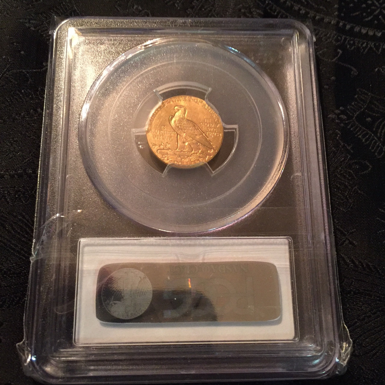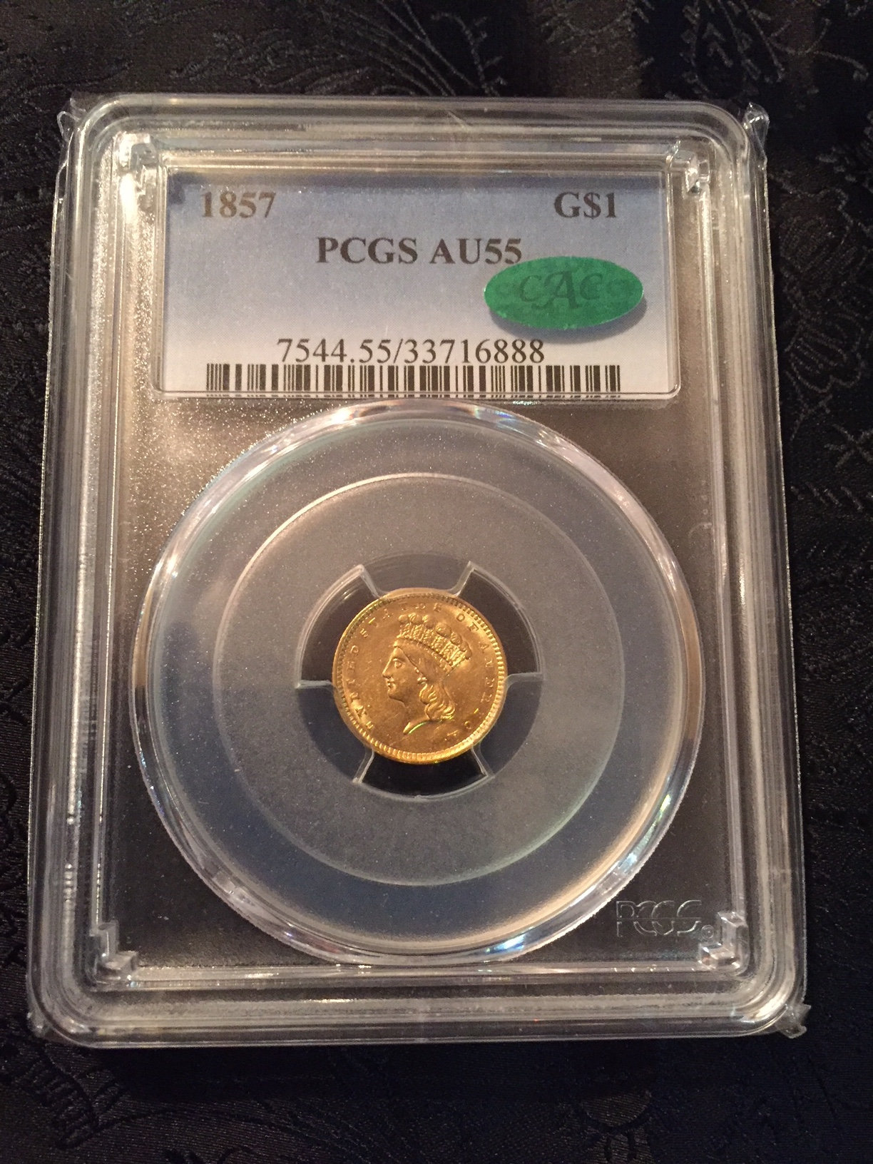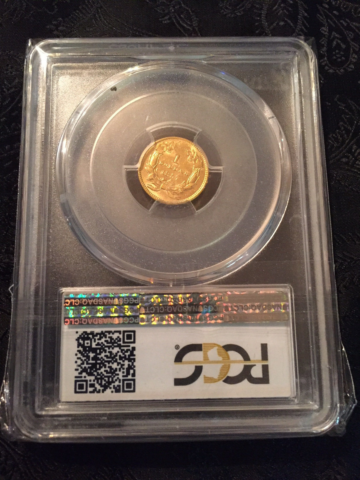 It probably isn't rotated as much as it looks. This is something I wish the people who put the coins in the holders would finally learn. One dollar gold coins are hardly ever put in at the proper position. There is no date or anything on the obverse that makes it super easy to get the orientation right, so they usually go by how the bust "should" look. But the only way to get it right is by making sure the first and last letter on the obverse are perfectly parallel and level.... which if you notice, this one is not.