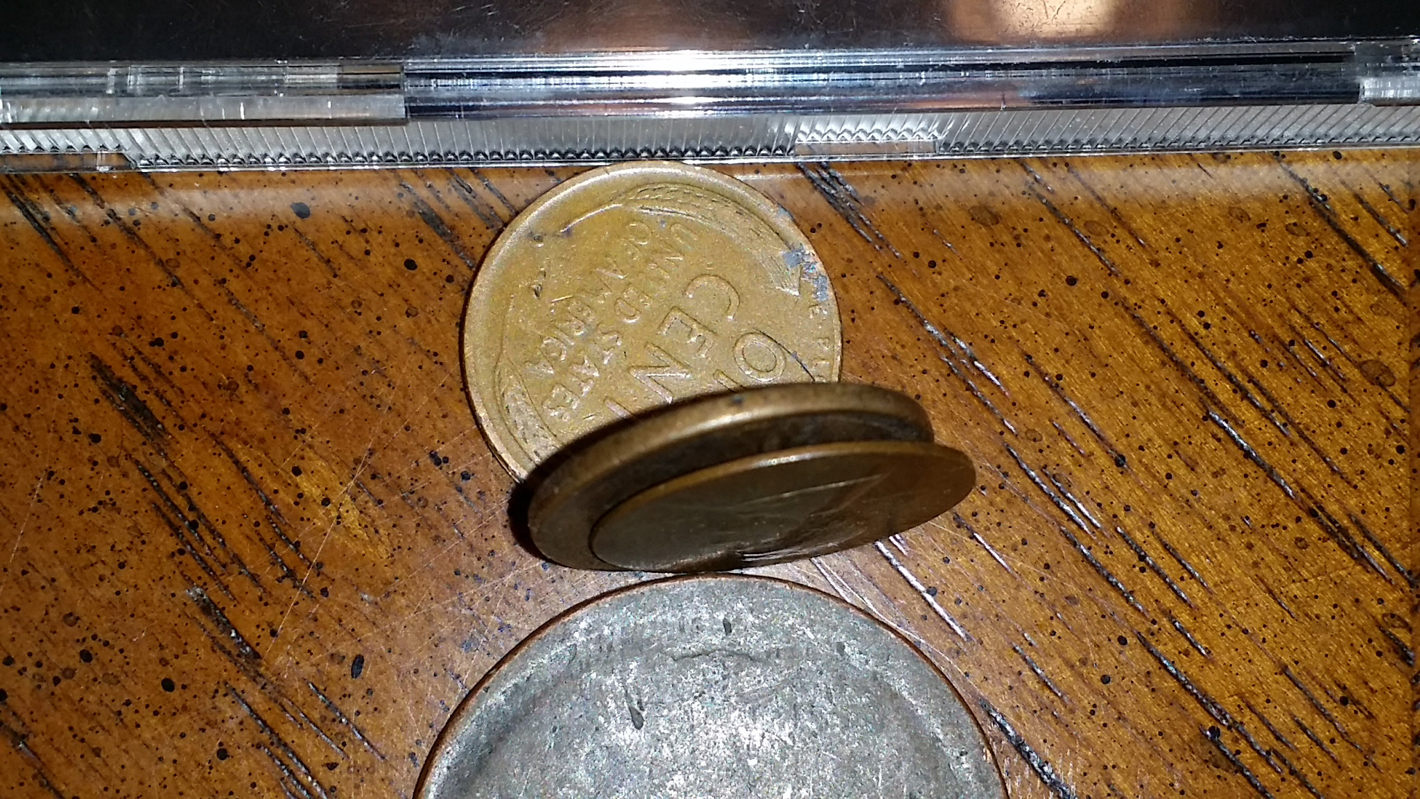 The Lincoln cent is thin because it was submerged in nitric acid for a little while.