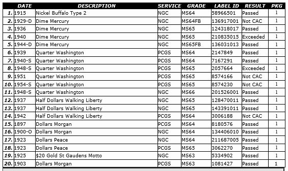 Nice looking lot of coins.... there should be some beans coming there....I like the Saint, really nice. Best of luck and be sure to let us know the results. Cheers, RickO