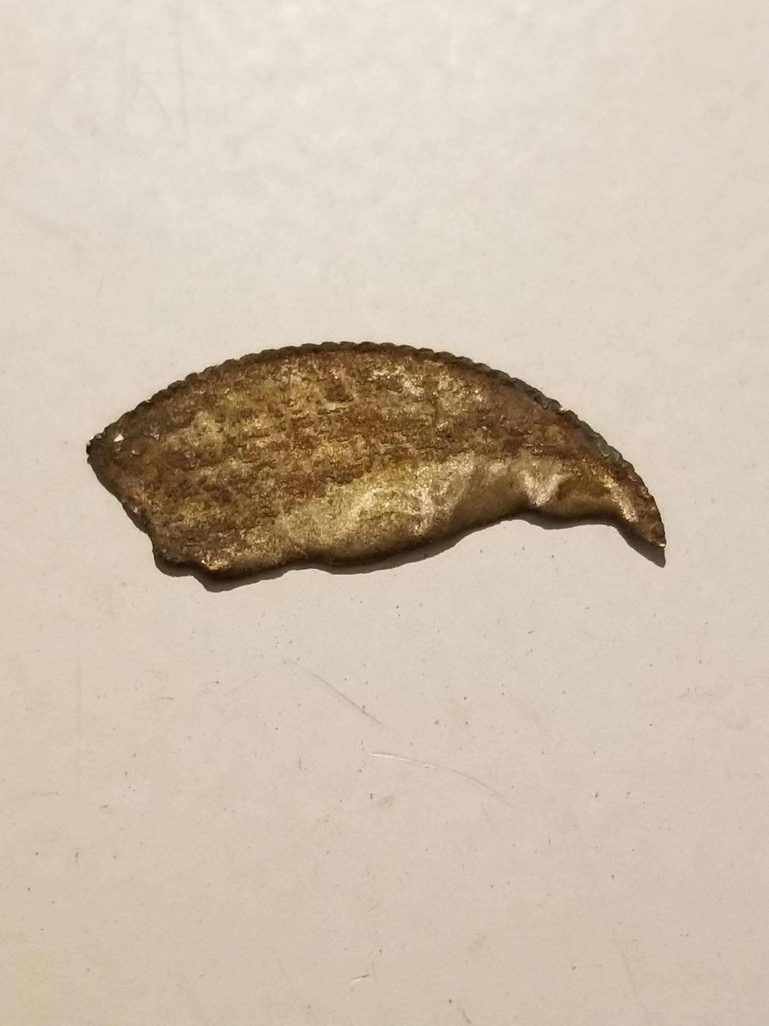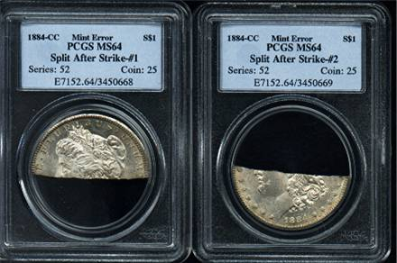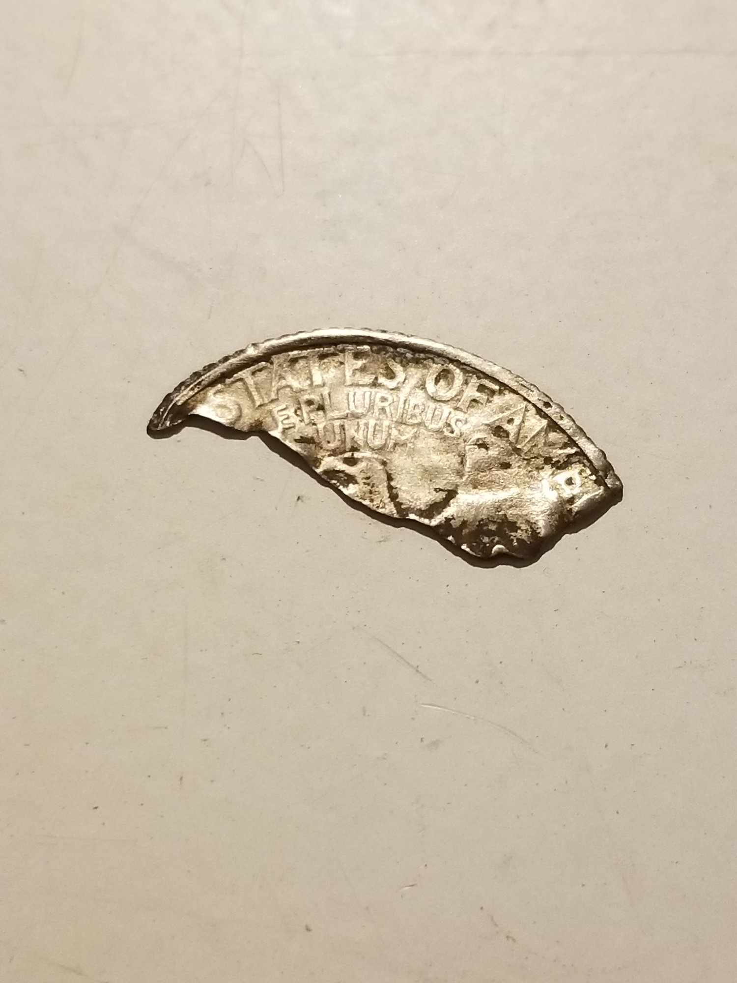 Maybe could have been junior's experiment with placing the coin in a vice and swinging a hammer at the top half to see if he could break off a piece!