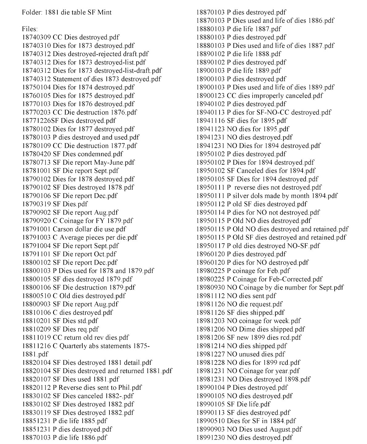 Die destruction lists available - Free. Now available on Newman Numismatic Portal (NNP)