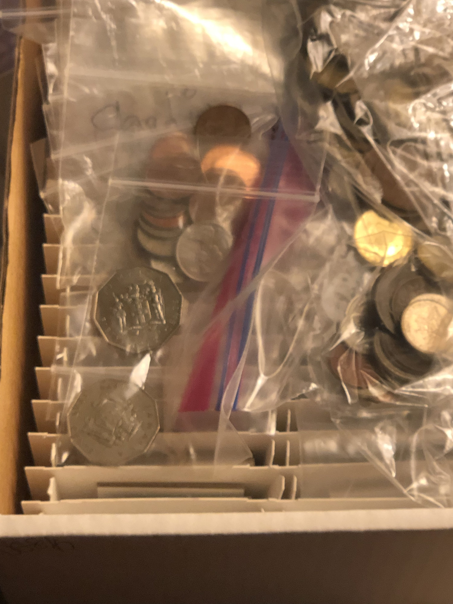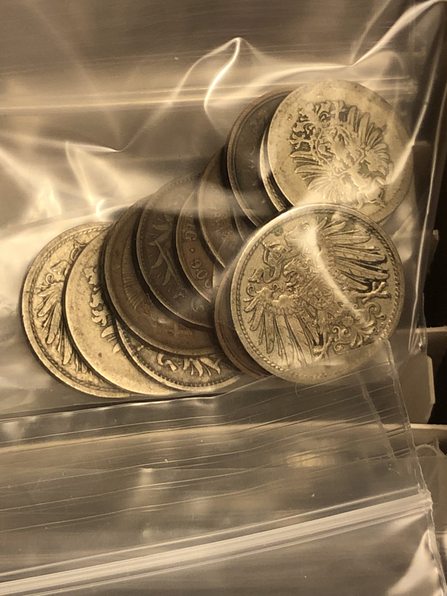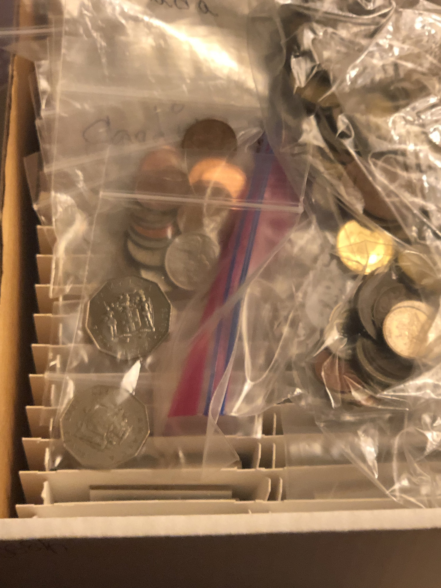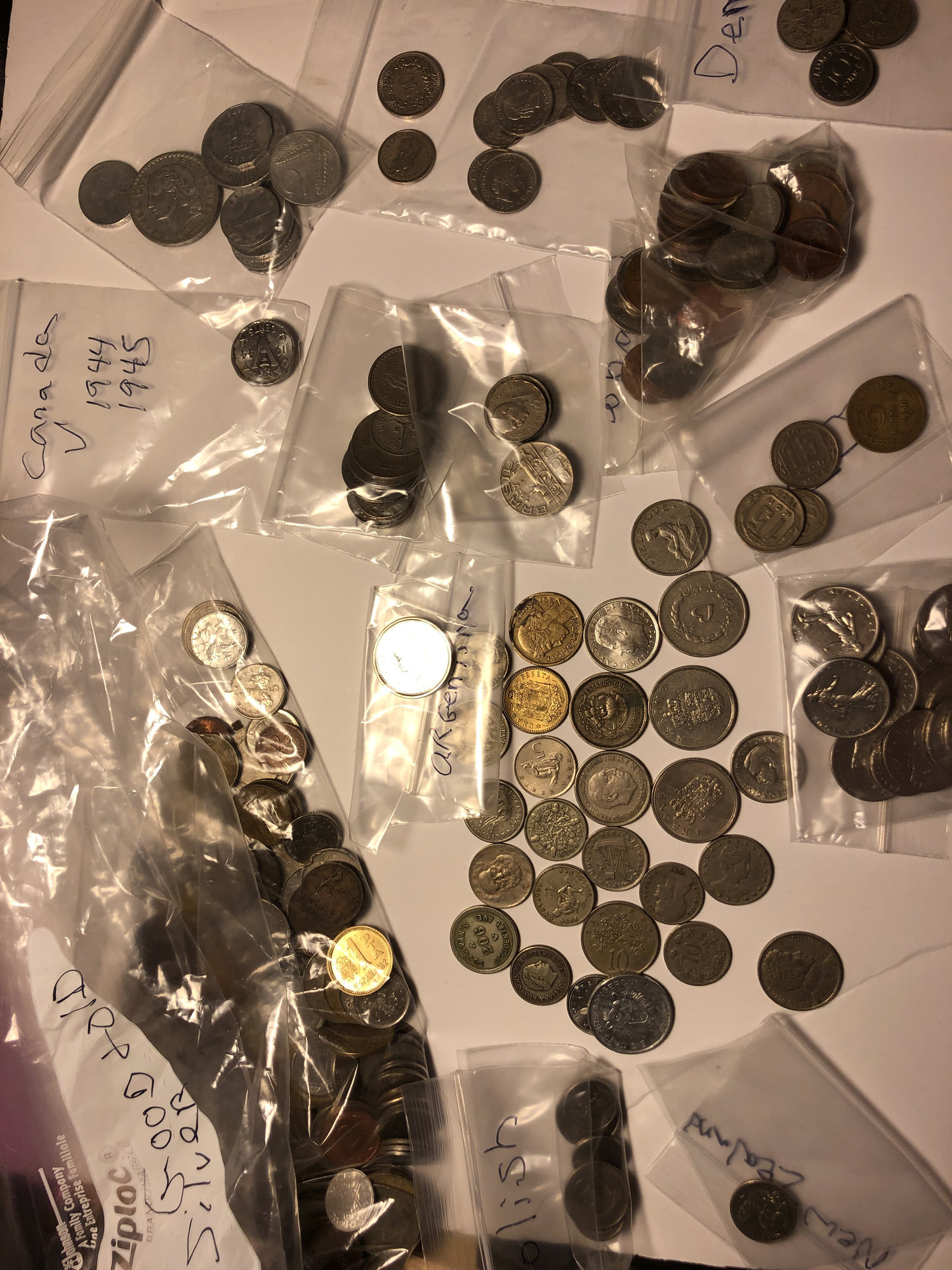 If it wasn't part of the stuff you got, you should try to get a copy of Krause World Coins. It doesn't need to be a new one and can be in the 1990's ... just use it as a reference to see what some of the coins are valued at and what they were made of. Check out the silver ones first.... just because something is old doesn't make it valuable. Almost all seem to be very common, inexpensive items, but it will be great fun looking them up and ID'ing them. Silver is about $15.50 per troy oz, but most coinage is .500 .600, .800 or, if old enough, .900 or .920 silver purity.