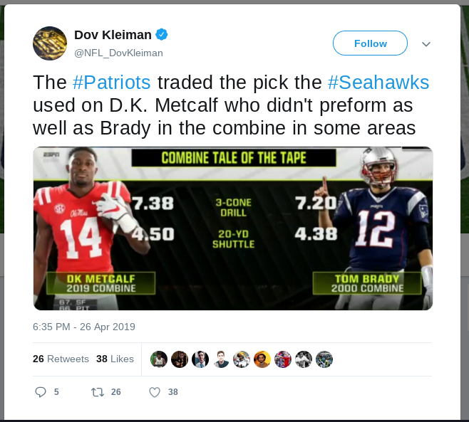 Thought this was pretty funny, DK Metcalf was considered one of the better WRs in the draft but didn't get drafted until the third round.