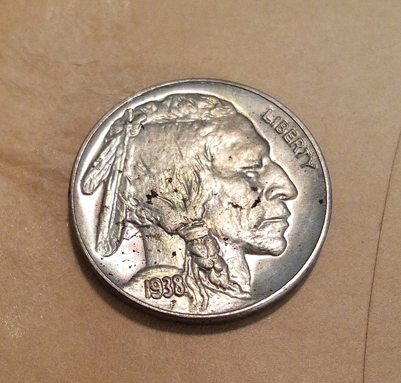 This must be somewhat similar to opening a time capsule. Enclosed with original letter are two documents, and a beautiful gem+ 1938-D Buffalo nickel. I already checked for D/D, and D/S...the strike is normal. Aside from the fly specks on the obverse, and reverse; from being entombed in the yellow 2x2 envelope for the past 81 years, is a beautiful pastel type pink, teal tone that the pictures do not pick up. Toning is subtle; yet pleasing. Cant be too many of these left? Have you ever seen anything like this? Thanks.