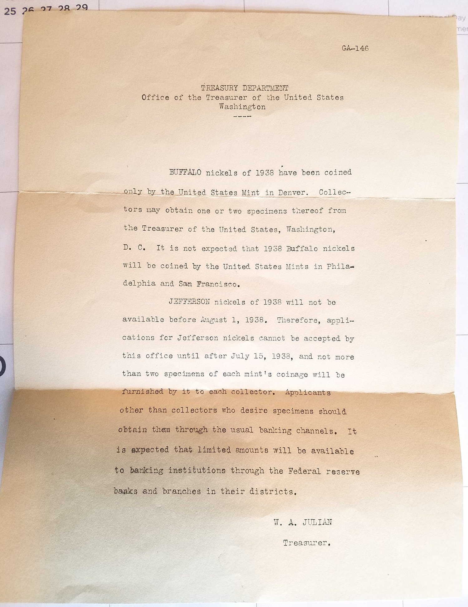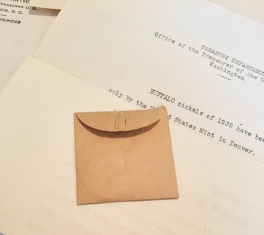 1938-D Buffalo Nickel w/ OGP and Interesting Documents from Treasury