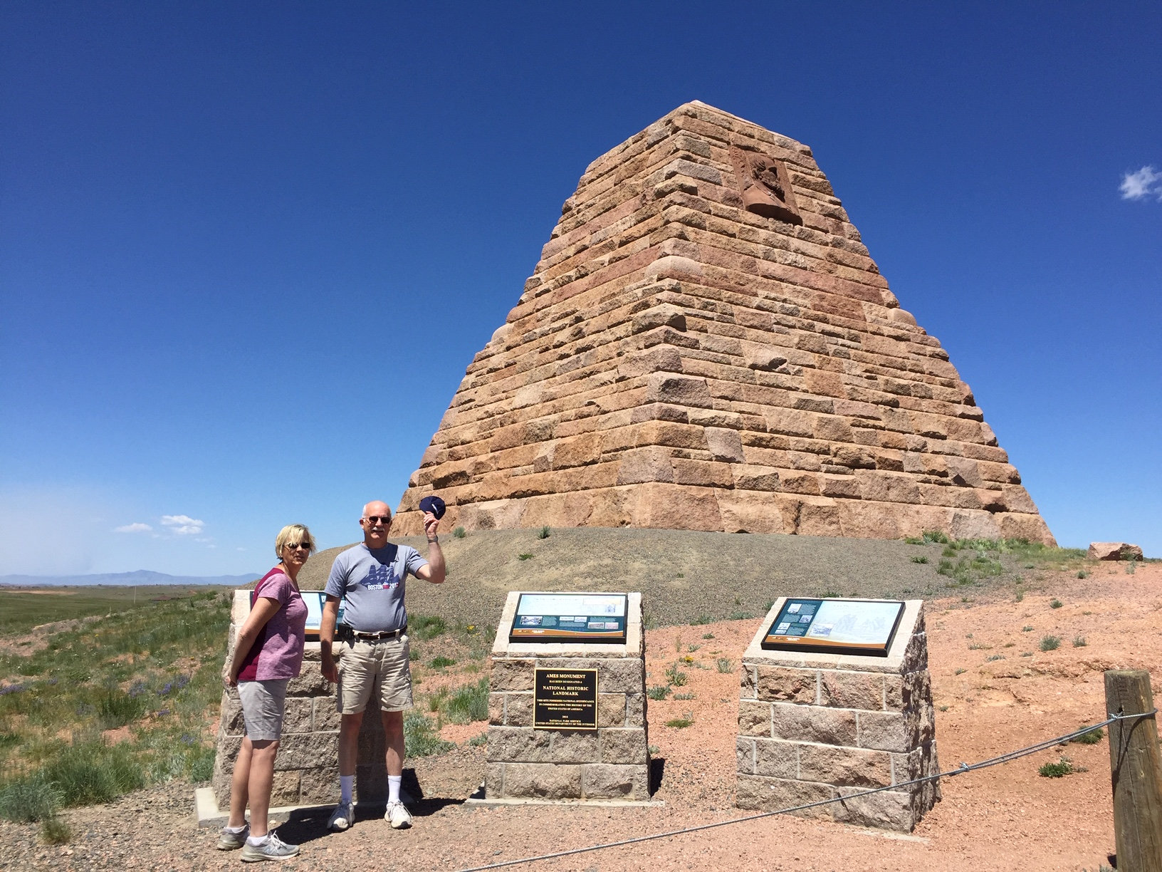 On its way to celebrate 150 years of the transcontinental railroad, so here's another coin connection. Ames Monument, marking the original high point of the transcontinental railroad, near Laramie WY, with bas relief of the Ames brothers sculpted by Augustus Saint-Gaudens.