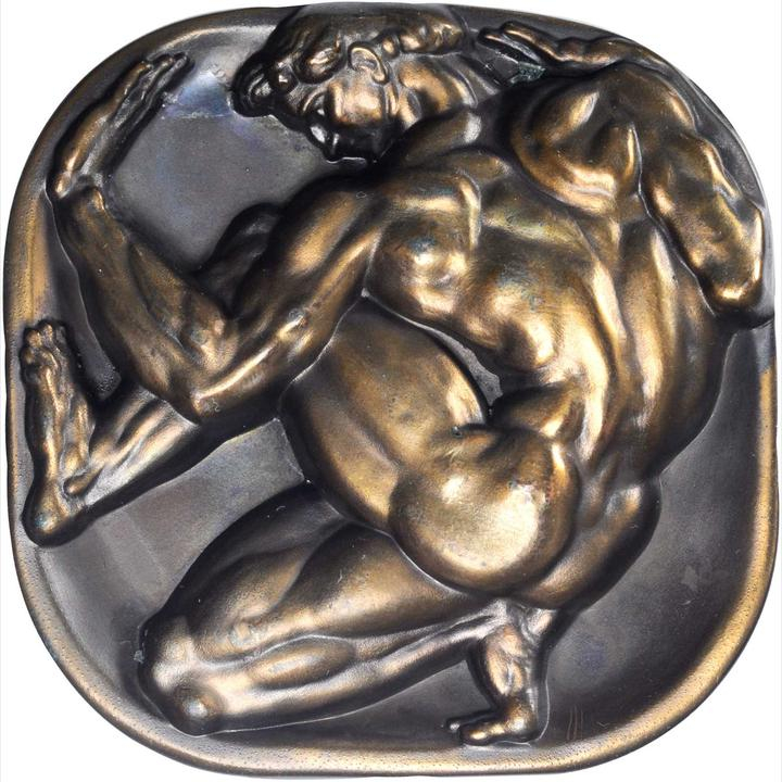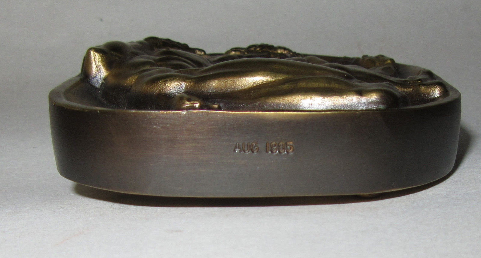 weighs over a pound. The mintage was reported at 750 pcs. and according to info in a Stack's listing it required 14 strikes to raise the detail to the artist's specifications, with the medal being annealed after each strike.