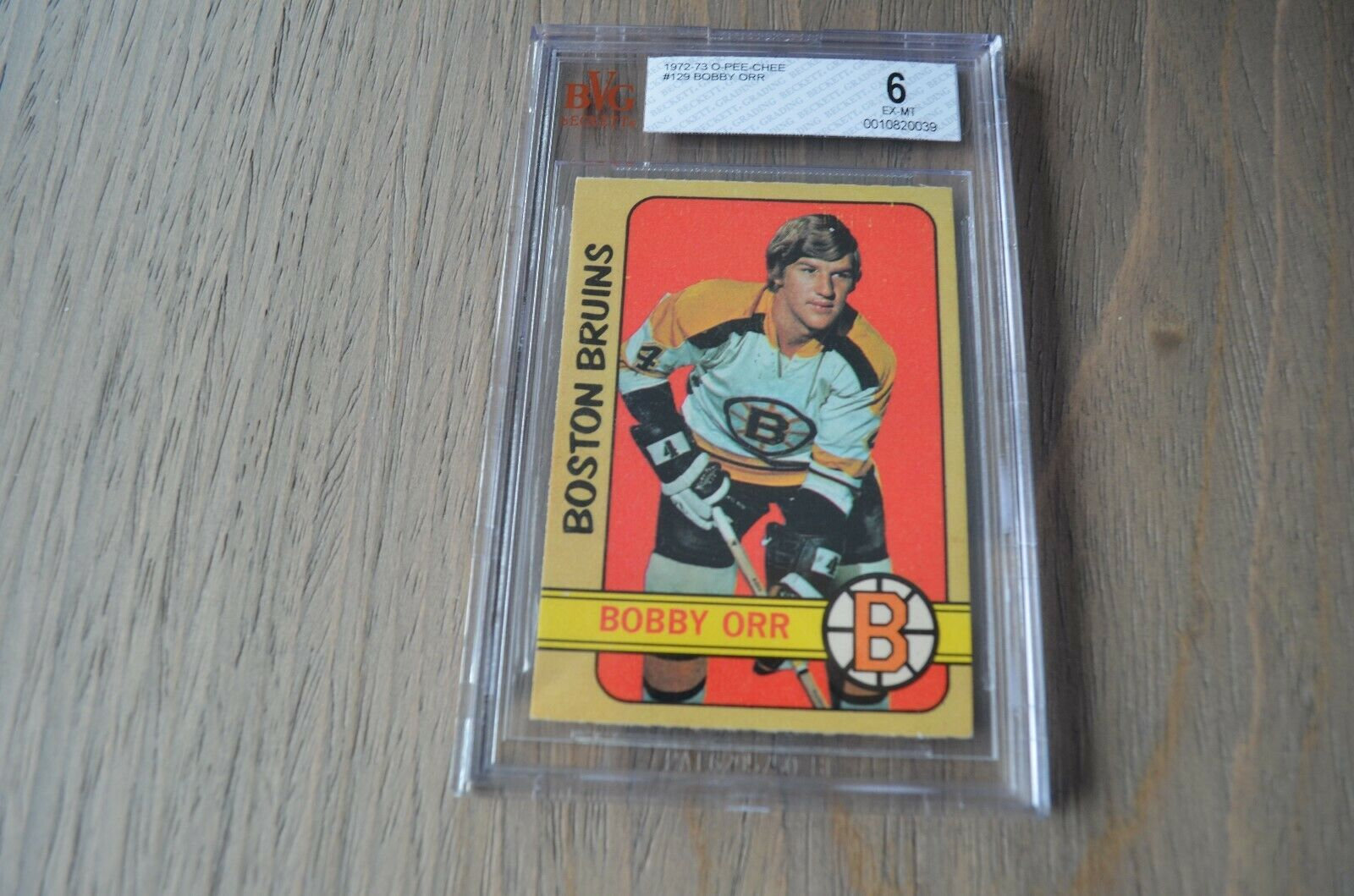 This is not a big deal, but just something I've never come across before, and wonder if anyone else has come across this too. So I only buy 7's , 8's, and 9's of Bobby Orr cards, crack them open, and send them to Florida to have Bobby sign. I am also a huge centering freak, so when I saw this 6, I had to have it.