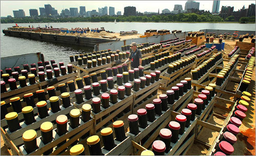 Phil Grucci loaded a rusty old barge with some serious sparkle power Monday that will be used to light up the Fourth of July sky.