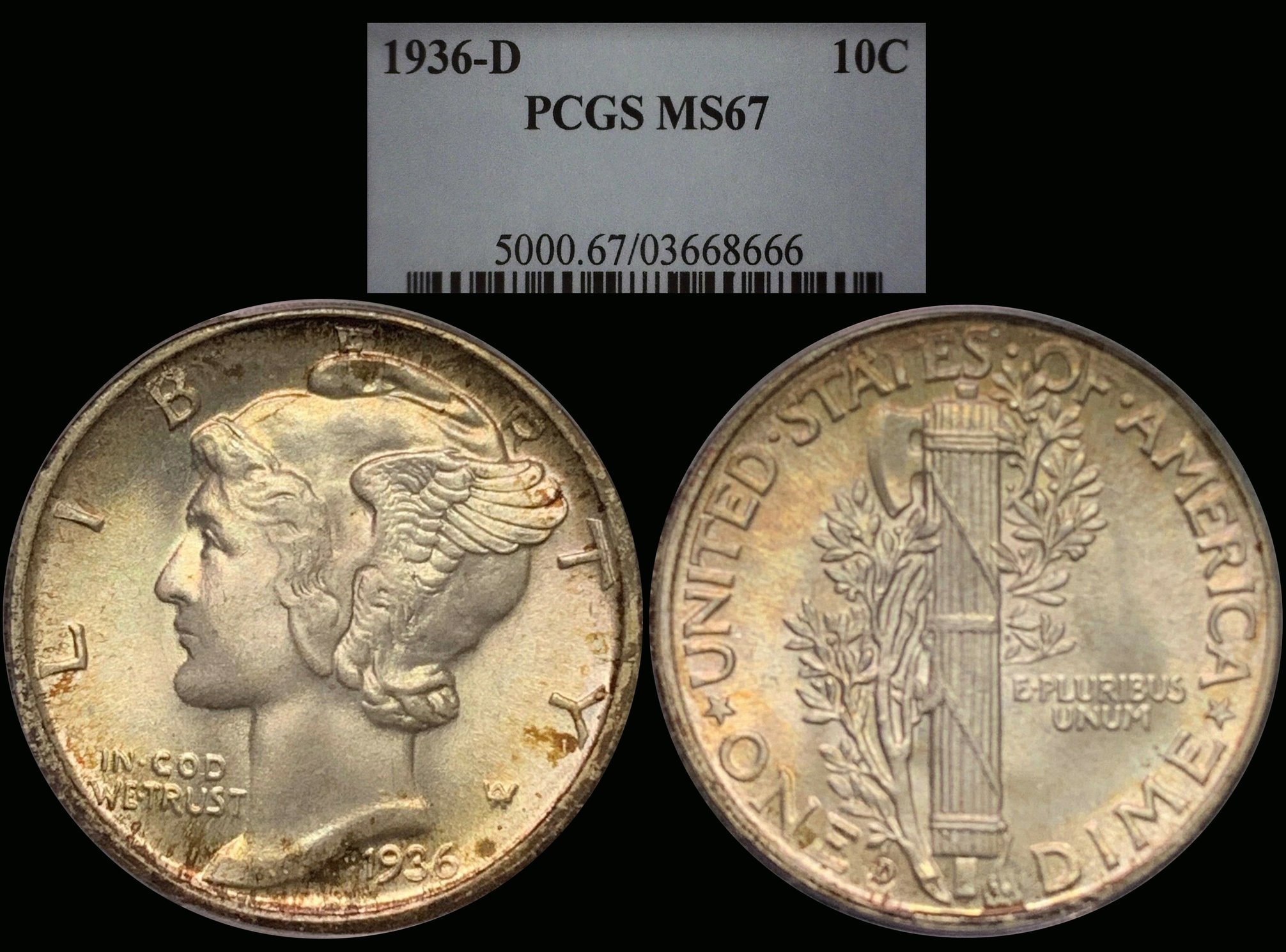The 1936-D from 64FB to 67. The is a pretty tuff Dime to find like this. Thanks for looking and comments welcome. ![]()