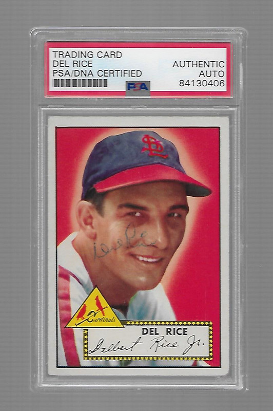 Up next is one that I have tried to locate for several years. I finally found one recently and added it to my collection. Mr Rice passed away in 1983. With the addition of this Rice, that completes my non-high number 1952 Topps Cardinals signed team set. The high numbers are nearly impossible. I have only seen a couple of examples out of the 4 that I need.