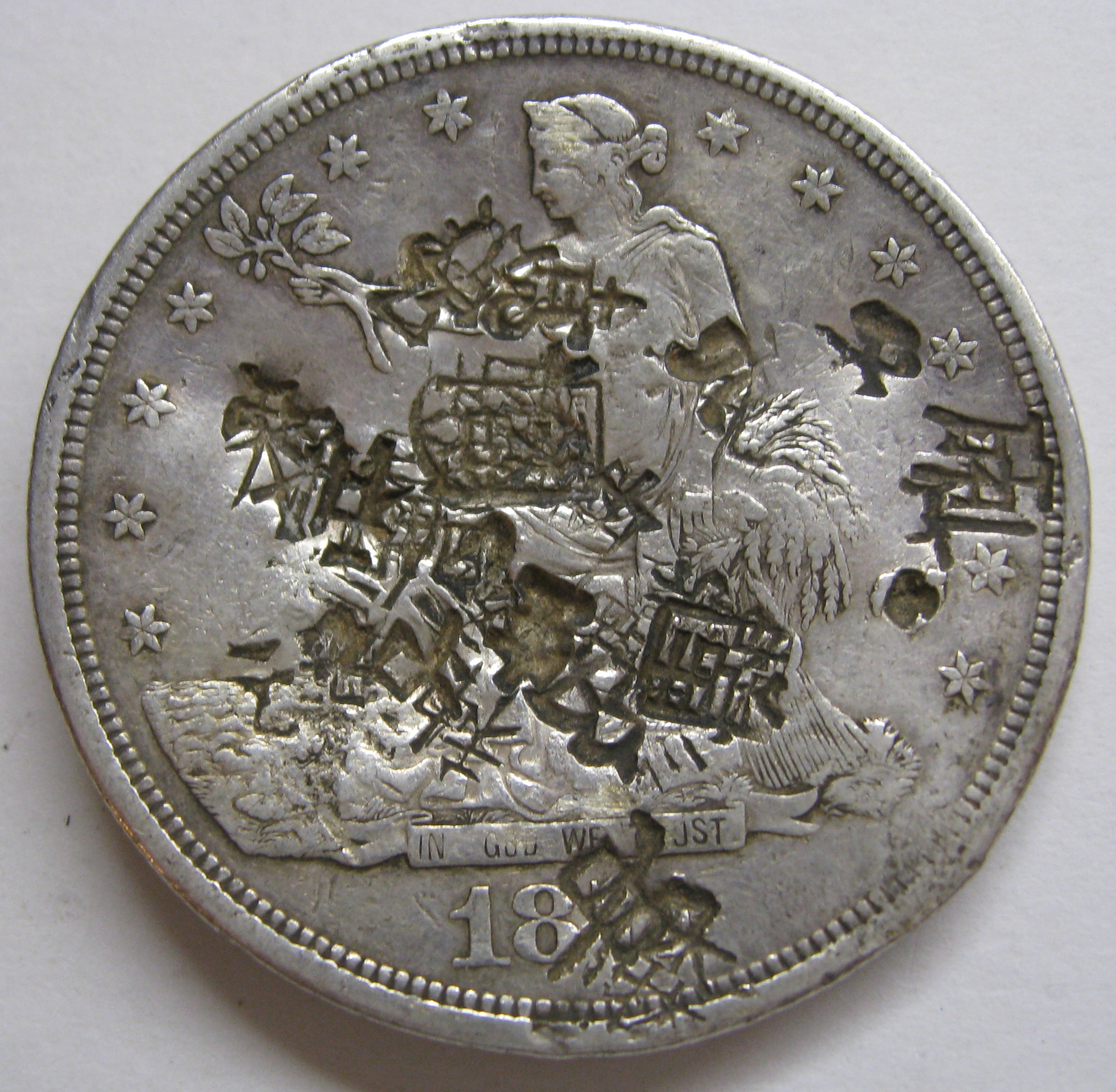 so i'm thinking i'd like to add a nice chopmarked example to my modest counterstamped collection.......i ran across this trainwreck of a coin on Ebay.....can anyone post a pic of a coin with more chopmarks on it?? this has got to be a record!