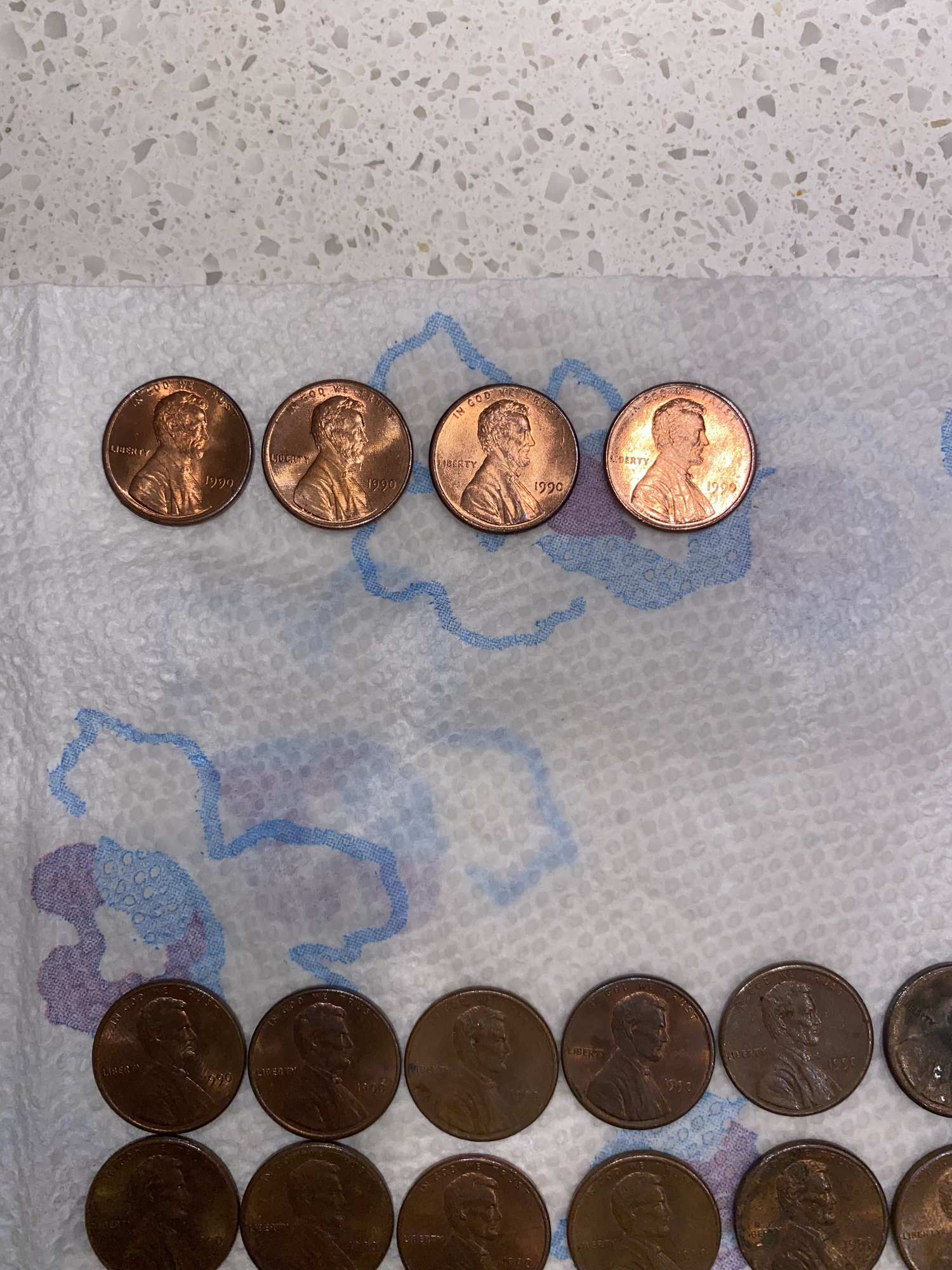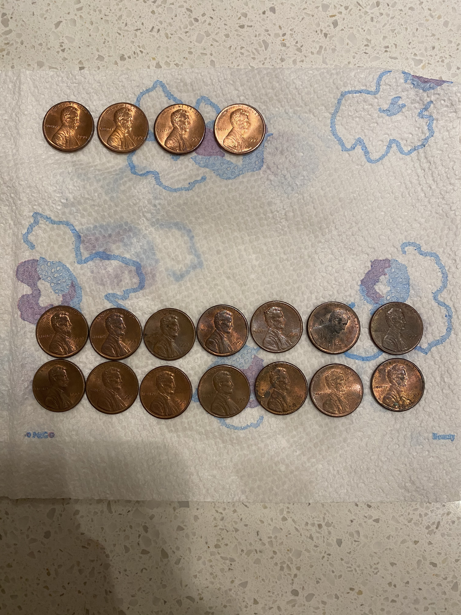 Not sure what’s on the paper towel the cents are on, but, it should speed up toning/corrosion overnight.