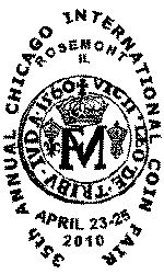 The first has a design based on a Scottish coin that honors Francis II of France and Queen Mary of Scotland, who were husband and wife. This is denoted by the combined letters “F” and “M.” The perimeter of the design reads, “35th Annual Chicago International Coin Fair,” and at the bottom are the show dates, “April 23-25 2010.” This design was rolled on cents.