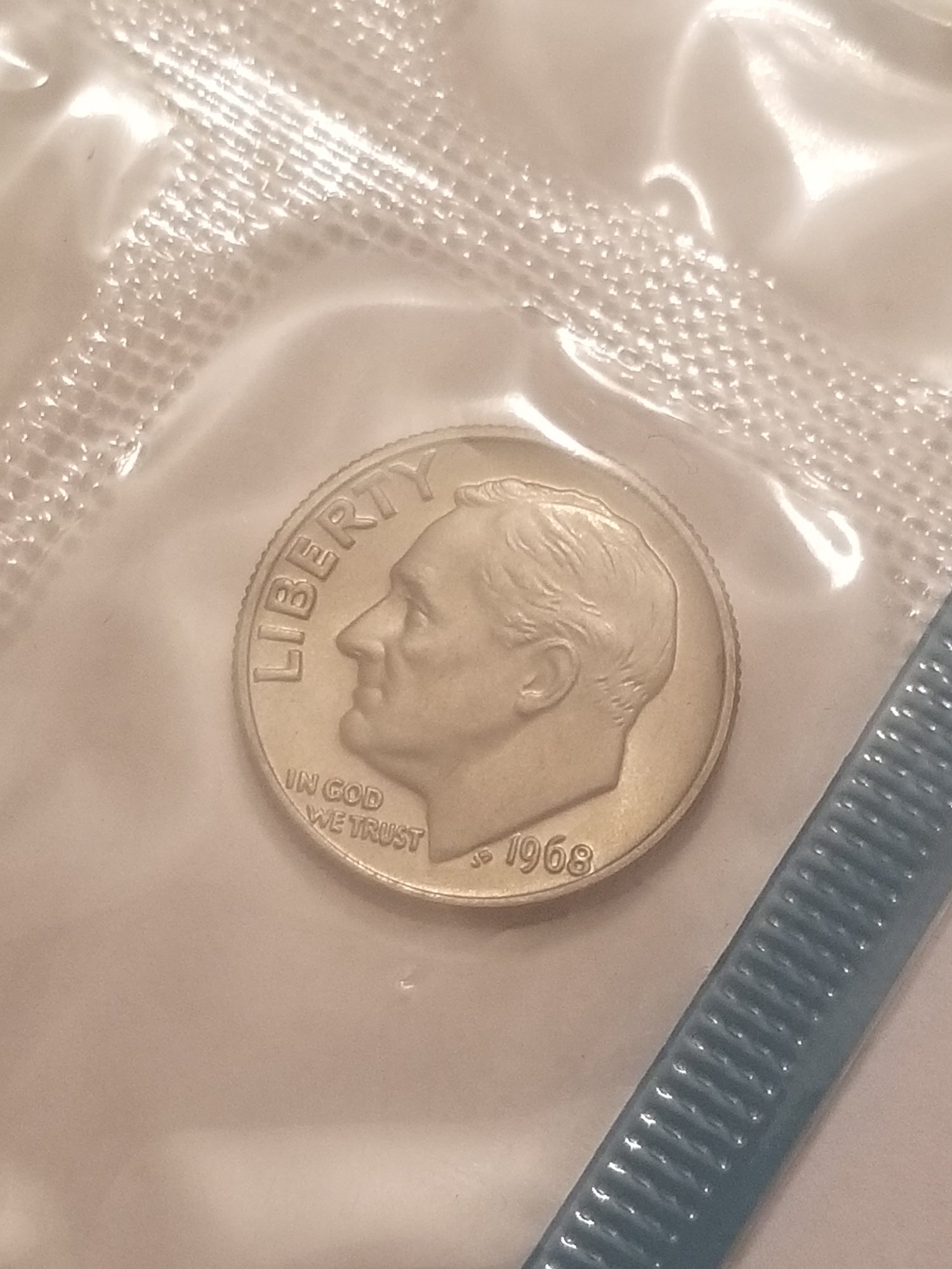 "68 dimes aren't terribly "important" because a couple hundred thousand were set aside in rolls and most of these should be pristine unless they are in paper in a bad environment. People set these aside because they represent the return of normal dating and mint marks. Roll coins tend to be very scruffy and made from poor dies.