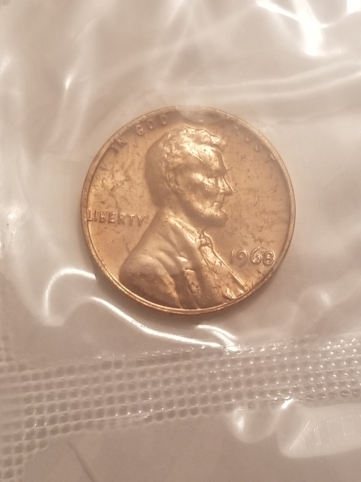 Finding 1968 cents in mint sets that are untarnished, with no carbon spots is almost unheard of.