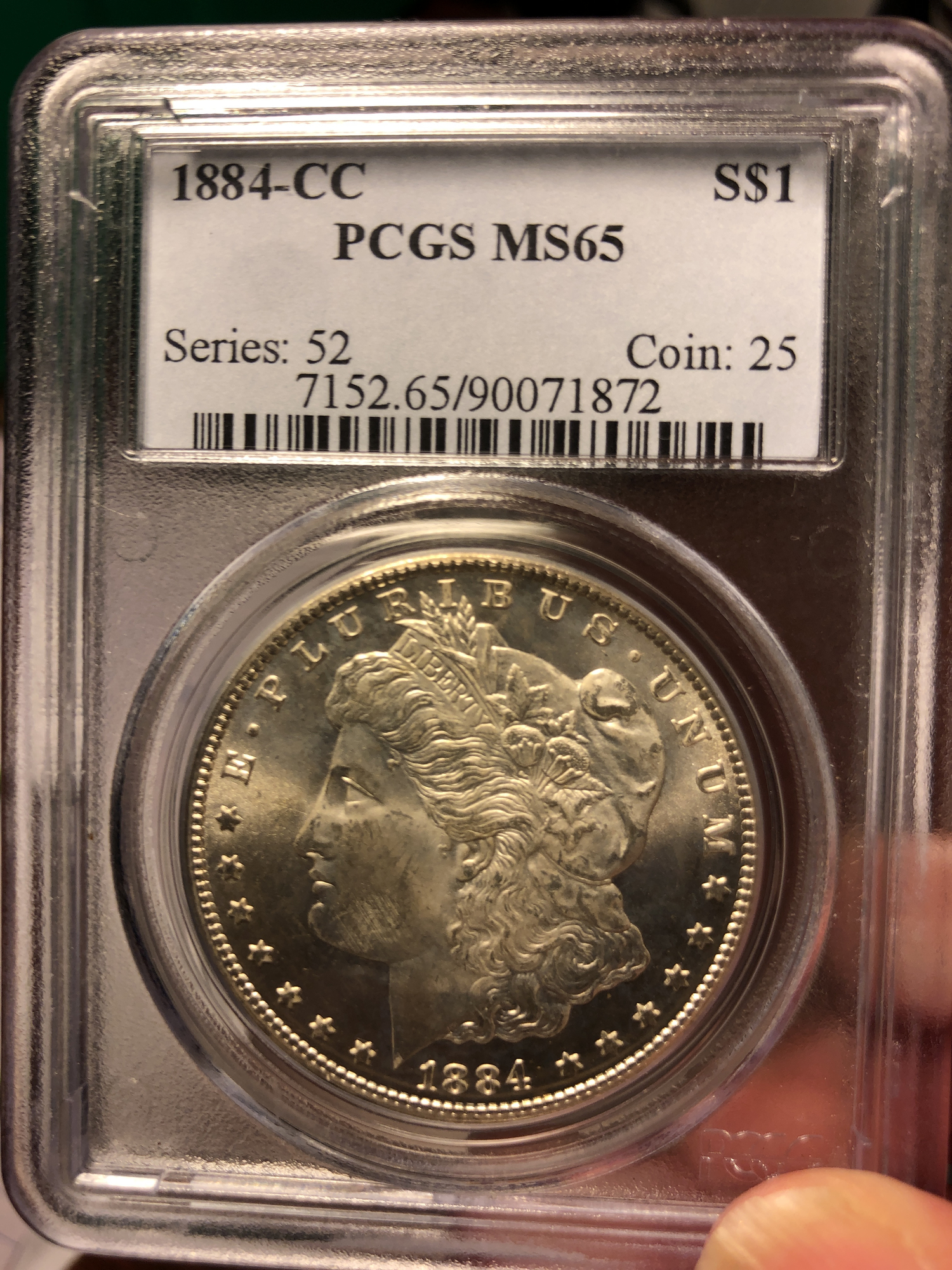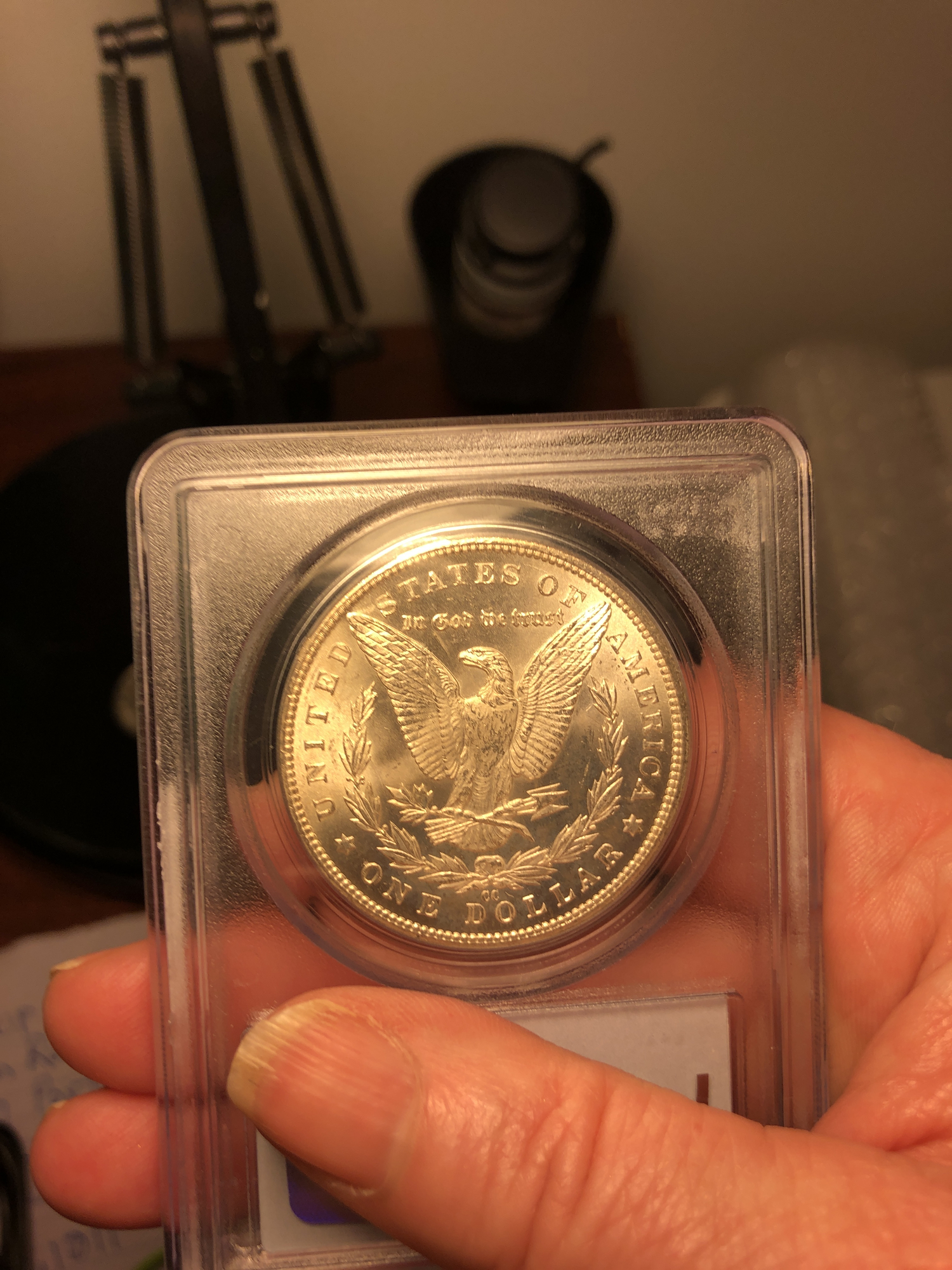 So after a long day at work I was determined to pickup my Movado and well when your @Pegasus Coin and Jewelry, holding your PCGS set registry App open with you look to fill a slot.....Today I was happy to add this one. Please ignore my amateur photos but to the best of your ability go ahead give a guess what is the grade?