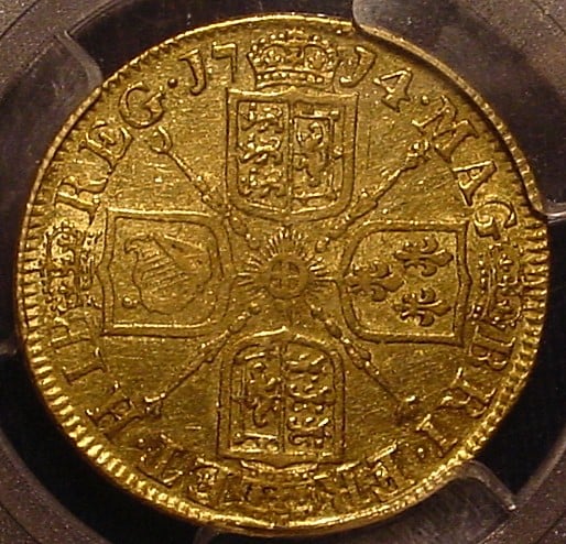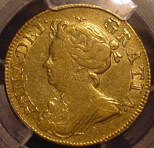 I have had a mild case of gold feaver, but it does not extend to very low grades. This is about as low as I will go. It is a 1713 guinea of Queen Ann.