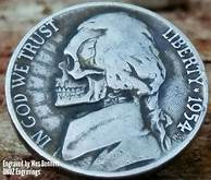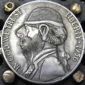 The Buffalo nickel is the trademark host coin for the hobo nickel. An early date high grade coin may help date or identify an artist but collectors are most interested in the carving quality. Desirable attributes include: deep carving, unusual subjects, altered facial features, raised or pushed metal (often a hat brim), and well smoothed fields. While the date is not that important, it is preferable to have the date and/or "LIBERTY" retained in the design.
