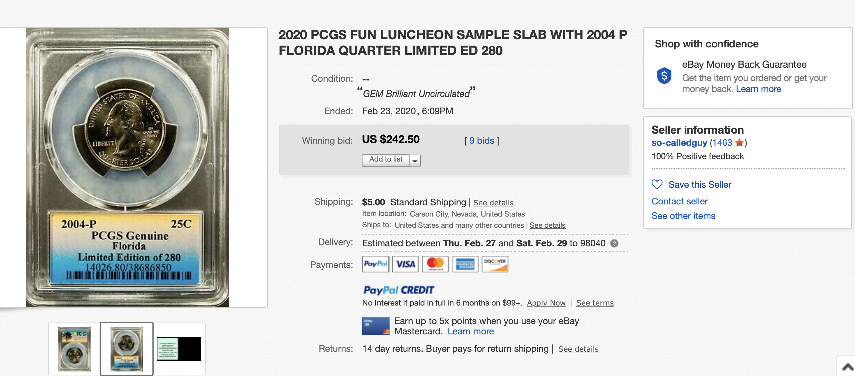 Perhaps someone is building a complete set of state quarters in "special" slabs. That would be a real challenge to complete. Two hundred dollars might be worth the price to that person. Look what many Daniel Carr issues go for.