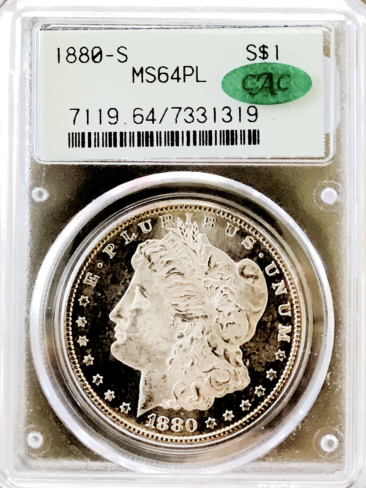 1880 S MORGAN PCGS MS64PL CAC OLD DOILY HOLDER! LOOKS DMPL! BEST EVER! NR