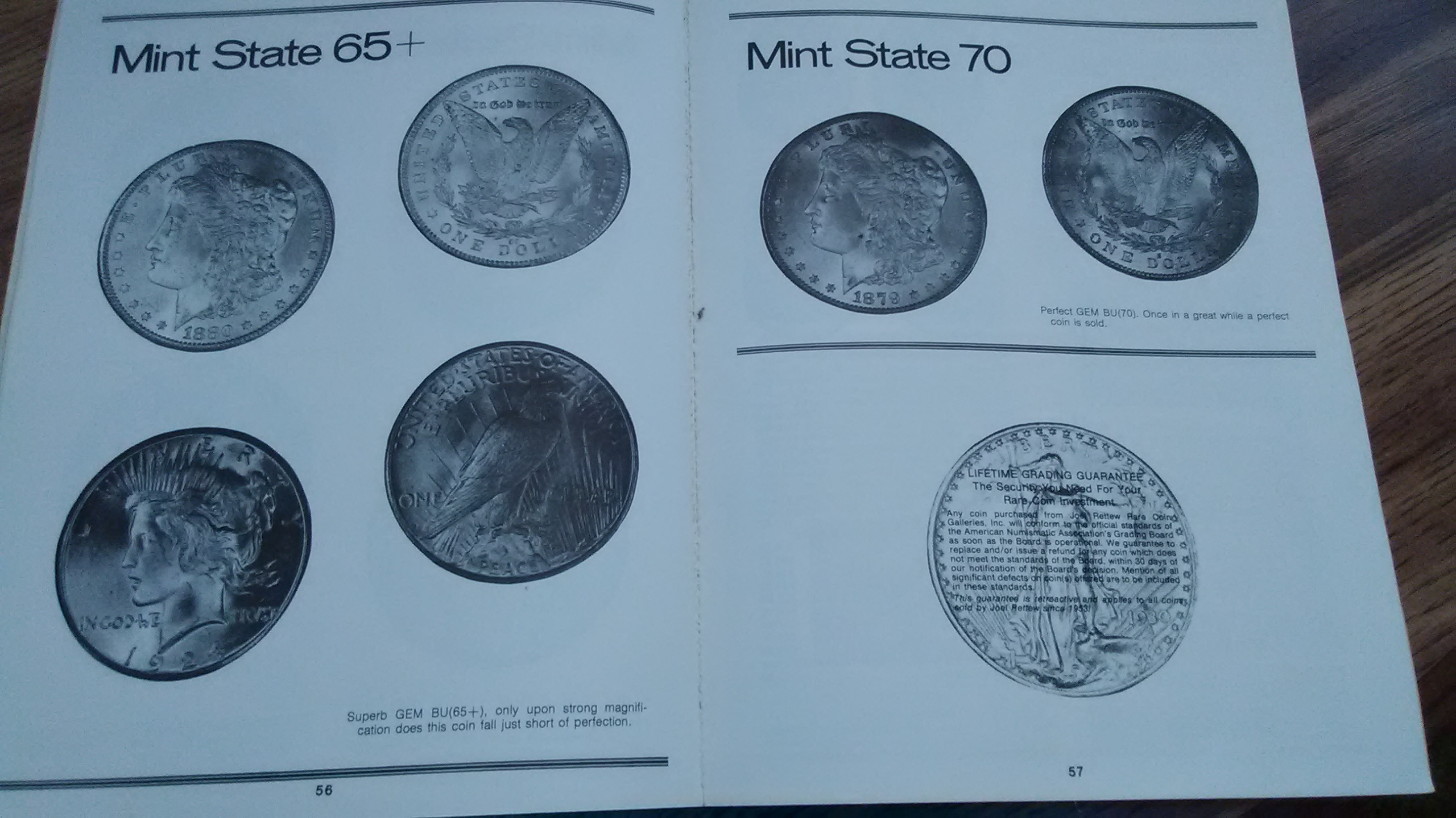 As far as officially it was ANACS with their paper grading certificates....I think late 70's or early 80's. ANACS identified multiple factors of the coin and graded each item separately. Then assigned an overall grade based on those factors. Essentially net grading. In 1976 Joel Rettew (and his employees David Hall and Van Simmons) put a multiple grading system on paper in their coin catalog (photos attached). MS60, MS60+, MS65, MS65+, MS70 (today that would be similar to 62, 64, 66-67, 67-68, 70). In my mind, the first dealer grading system put down on paper and basically a "net" system since anything with + signs is assigning extra factors beyond the grade itself. They were also accounting for strike, marks, etc. Even then JA was a teen trading in the coin markets....well out of diapers....lol. New England Rare Coin Galleries (Jim Halperin, Mark Emory, Russ Vaughn, Chris Tracey, Lee Belisario, etc) in the mid-70's was also assigning number grades of 60,60+,65,67, and even 70. Realistically, anyone ever evaluating how much to pay for a coin had to run "net grading - net value" through their heads....regardless of how they did it. Goes WAY back.