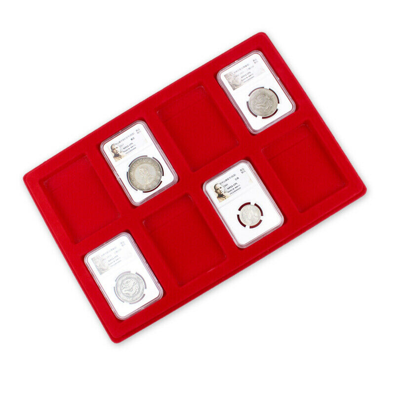 PCGS slabs fit fine-nearly all of mine are that brand. And eight is the only size I've seen (for slabs.) There's a company in Germany called Lindner that makes a better quality tray that holds nine slabs but they are on the expensive side-close to $50/tray with shipping. Here's an image and their website.
