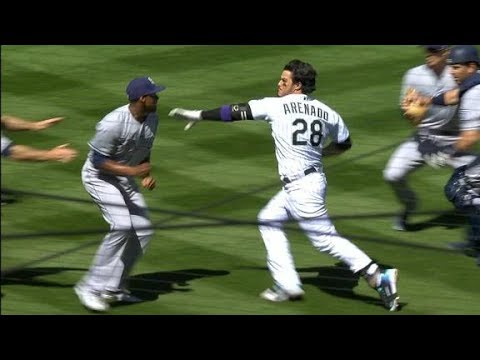Nolan Arenado charges the mound.