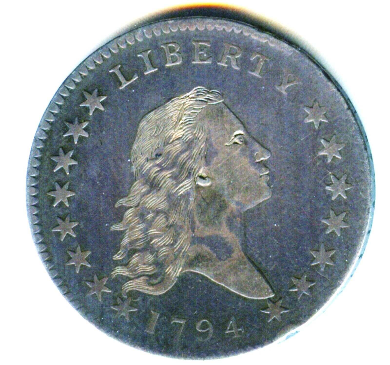This is my 1794 O.101a VF25, same DM and die state as OP. Compare the sharpness of LIBERTY, the date and dentilation to the auction coin.