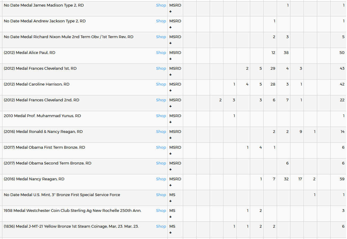 None of the medals that you have listed are relevant. Only one actually appears to be a 3” bronze medal (the subject of this discussion), and it has a pop of 1, which appears to be graded MS69. Regardless I would say that medals that end up in MS64 or 65 holders, are acceptable from a manufacturing quality standpoint, assuming that the grades posted actually reflect the quality of the medals graded.