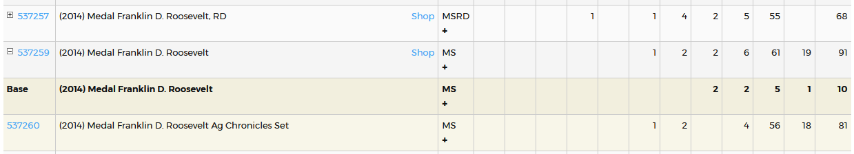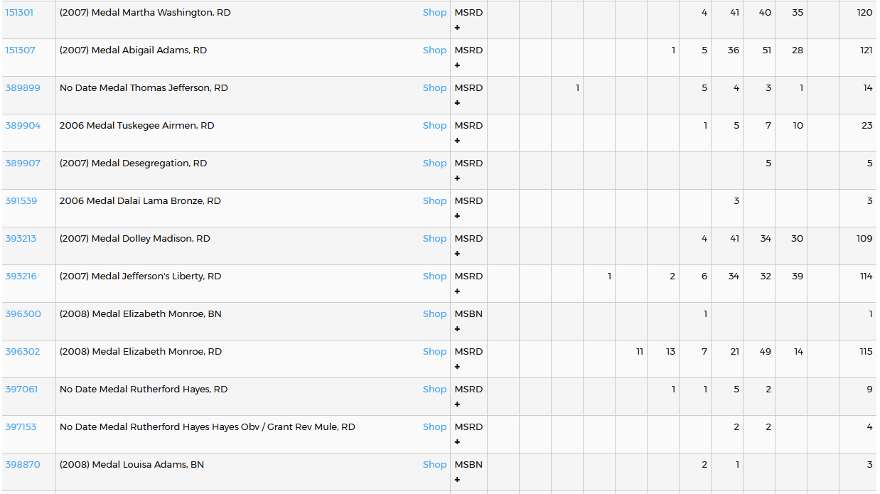 first, I should have excluded the special mint sets and silver medals. those are handled better.