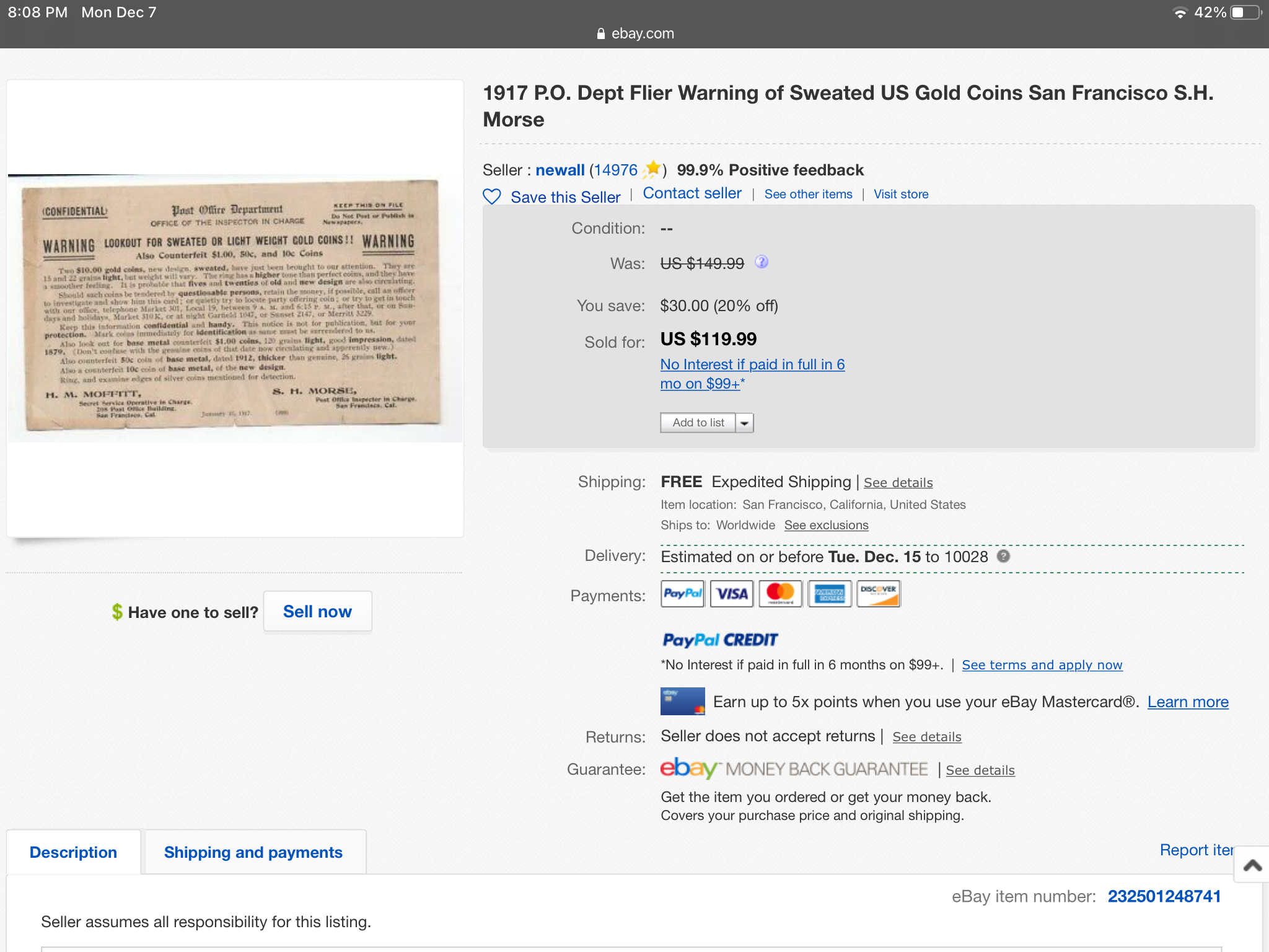 https://www.ebay.com/itm/1917-P-O-Dept-Flier-Warning-of-Sweated-US-Gold-Coins-San-Francisco-S-H-Morse-/232501248741
